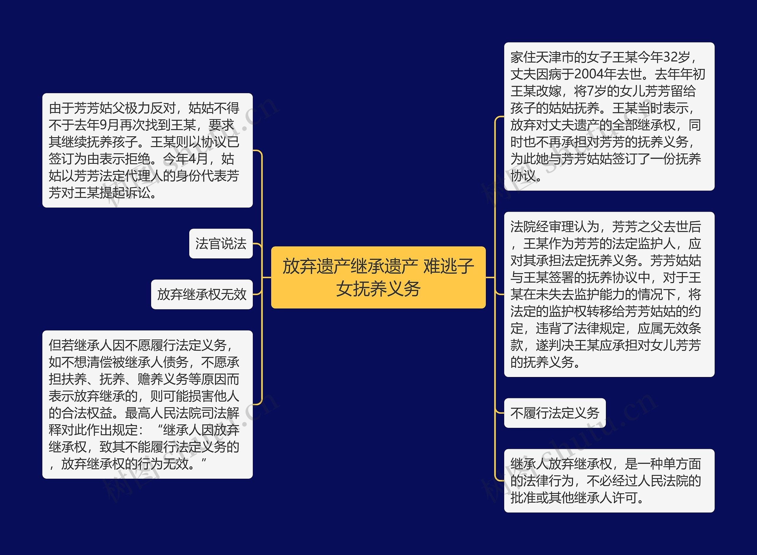 家住天津市的女子王某今年32岁,丈夫因病于2004年去世。去年年初王某改嫁,将7岁的女儿芳芳留给孩子的姑姑抚养。王某当时表示,放弃对丈夫遗产的全部继承权,同时也不再承担对芳芳的抚养义务,为此她与芳芳姑姑签订了一份抚养协议。