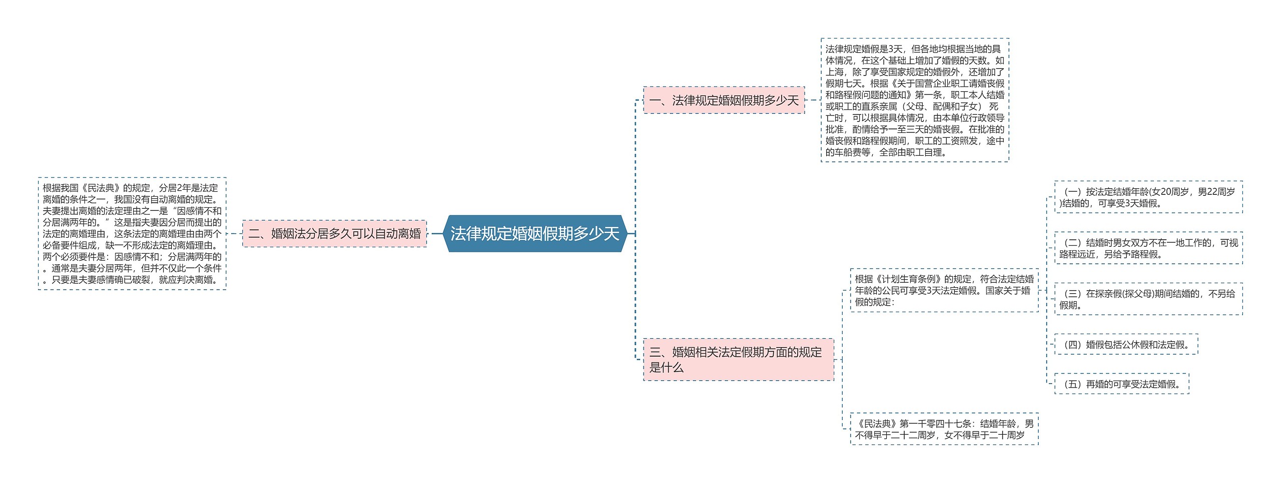 树图思维导图提供《法律规定婚姻假期多少天》在线思维导图免费制作,点击“编辑”按钮,可对《法律规定婚姻假期多少天》进行在线思维导图编辑,本思维导图属于思维导图模板主题,文件编号是:861ce4403818b5f8f652ba21638ec19e
