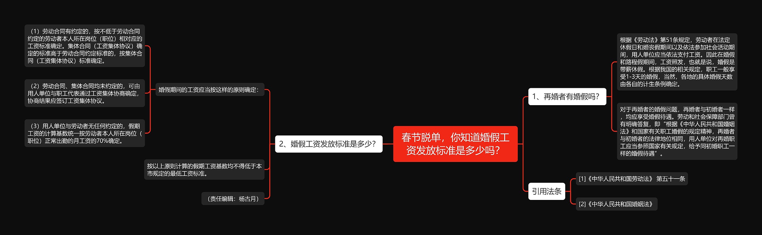 树图思维导图提供《春节脱单,你知道婚假工资发放标准是多少吗?》在线思维导图免费制作,点击“编辑”按钮,可对《春节脱单,你知道婚假工资发放标准是多少吗?》进行在线思维导图编辑,本思维导图属于思维导图模板主题,文件编号是:527797c55868cadc0533305e58d860dd