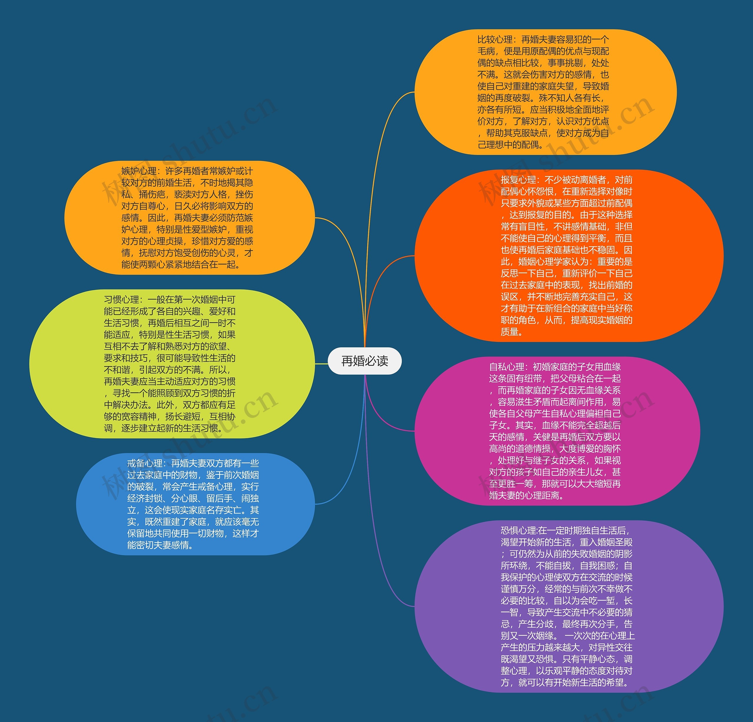 比较心理:再婚夫妻容易犯的一个毛病,便是用原配偶的优点与现配偶的缺点相比较,事事挑剔,处处不满。这就会伤害对方的感情,也使自己对重建的家庭失望,导致婚姻的再度破裂。殊不知人各有长,亦各有所短。应当积极地全面地评价对方,了解对方,认识对方优点,帮助其克服缺点,使对方成为自己理想中的配偶。