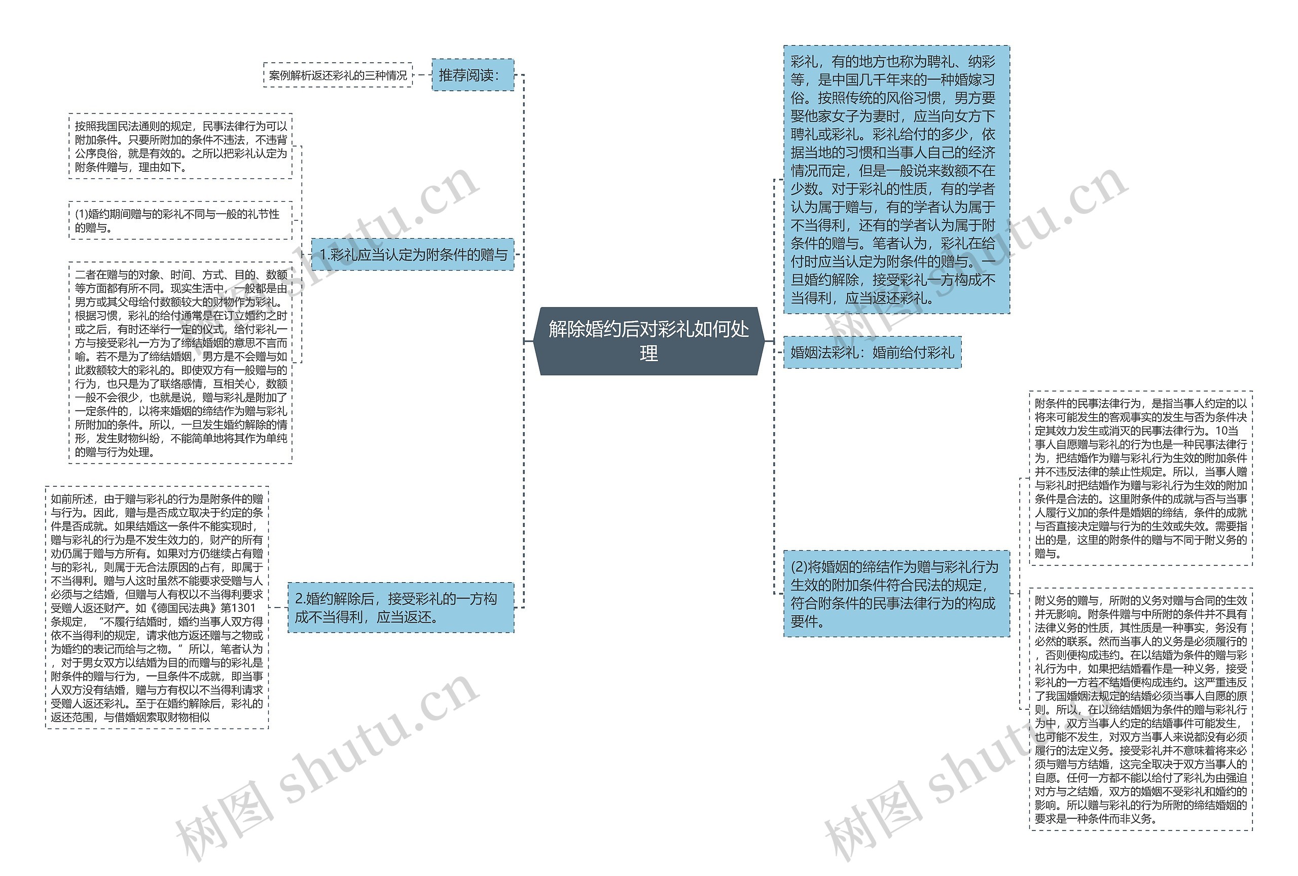 附义务的赠与,所附的义务对赠与合同的生效并无影响。附条件赠与中所附的条件并不具有法律义务的性质,其性质是一种事实,务没有必然的联系。然而当事人的义务是必须履行的,否则便构成违约。在以结婚为条件的赠与彩礼行为中,如果把结婚看作是一种义务,接受彩礼的一方若不结婚便构成违约。这严重违反了我国婚姻法规定的结婚必须当事人自愿的原则。所以,在以缔结婚姻为条件的赠与彩礼行为中,双方当事人约定的结婚事件可能发生,也可能不发生,对双方当事人来说都没有必须履行的法定义务。接受彩礼并不意味着将来必须与赠与方结婚,这完全取决于双方当事人的自愿。任何一方都不能以给付了彩礼为由强迫对方与之结婚,双方的婚姻不受彩礼和婚约的影响。所以赠与彩礼的行为所附的缔结婚姻的要求是一种条件而非义务。