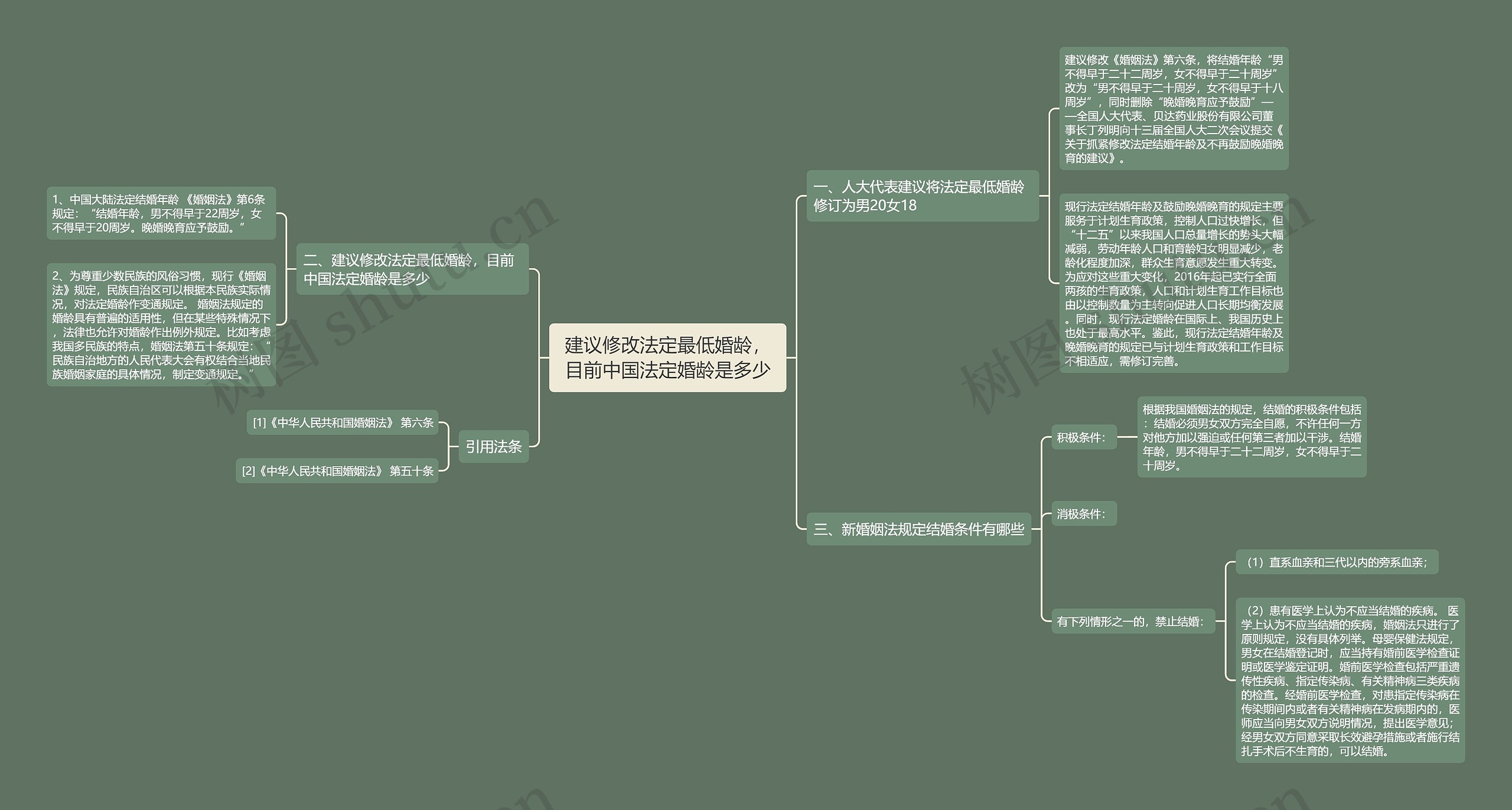 树图思维导图提供《建议修改法定最低婚龄,目前中国法定婚龄是多少》在线思维导图免费制作,点击“编辑”按钮,可对《建议修改法定最低婚龄,目前中国法定婚龄是多少》进行在线思维导图编辑,本思维导图属于思维导图模板主题,文件编号是:0085d341a5ea1edb0d3d1be758e486bf