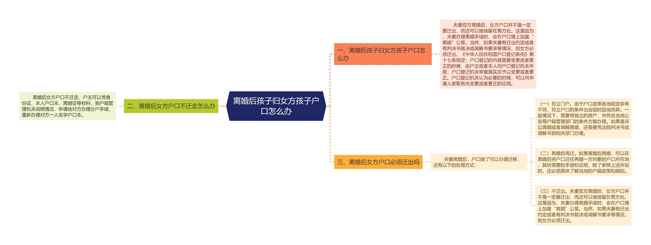 树图思维导图提供《离婚后孩子归女方孩子户口怎么办》在线思维导图免费制作,点击“编辑”按钮,可对《离婚后孩子归女方孩子户口怎么办》进行在线思维导图编辑,本思维导图属于思维导图模板主题,文件编号是:19c79937d3814e46a46c86b388172408