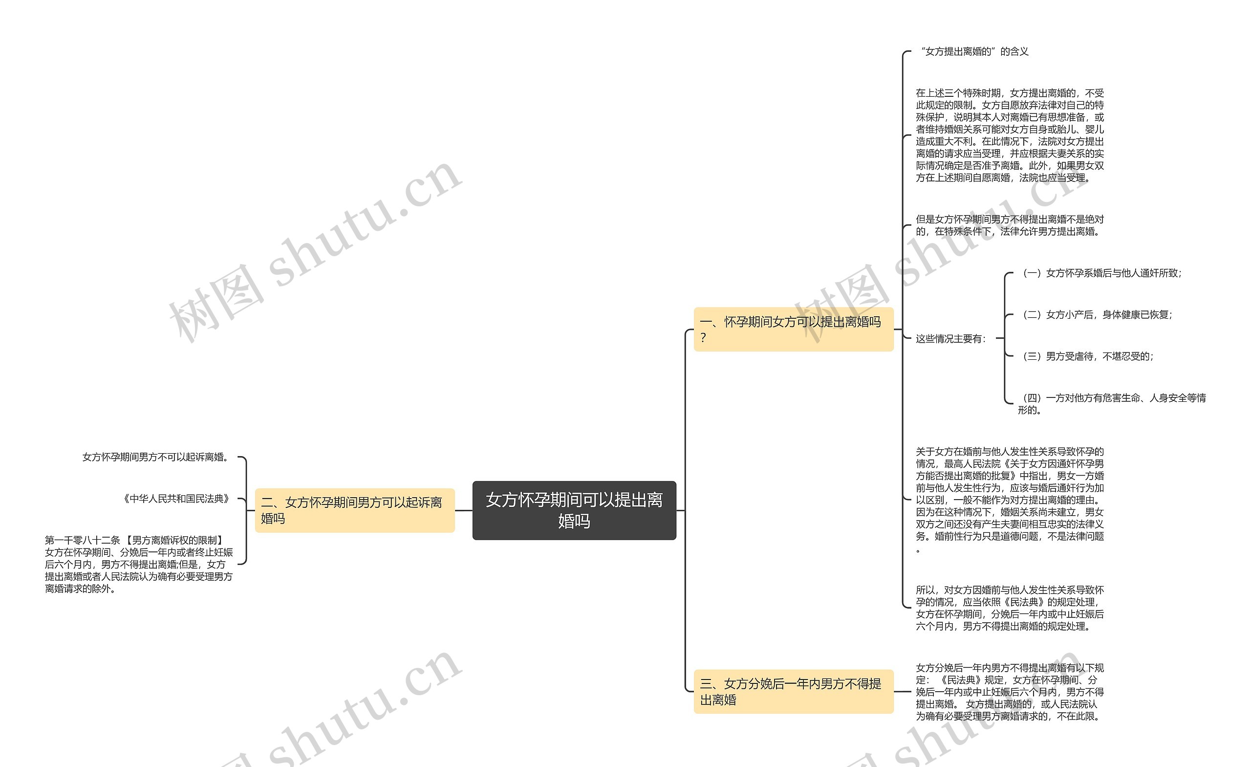 树图思维导图提供《女方怀孕期间可以提出离婚吗》在线思维导图免费制作,点击“编辑”按钮,可对《女方怀孕期间可以提出离婚吗》进行在线思维导图编辑,本思维导图属于思维导图模板主题,文件编号是:7b25840cea01b063679b8d726ddf6027