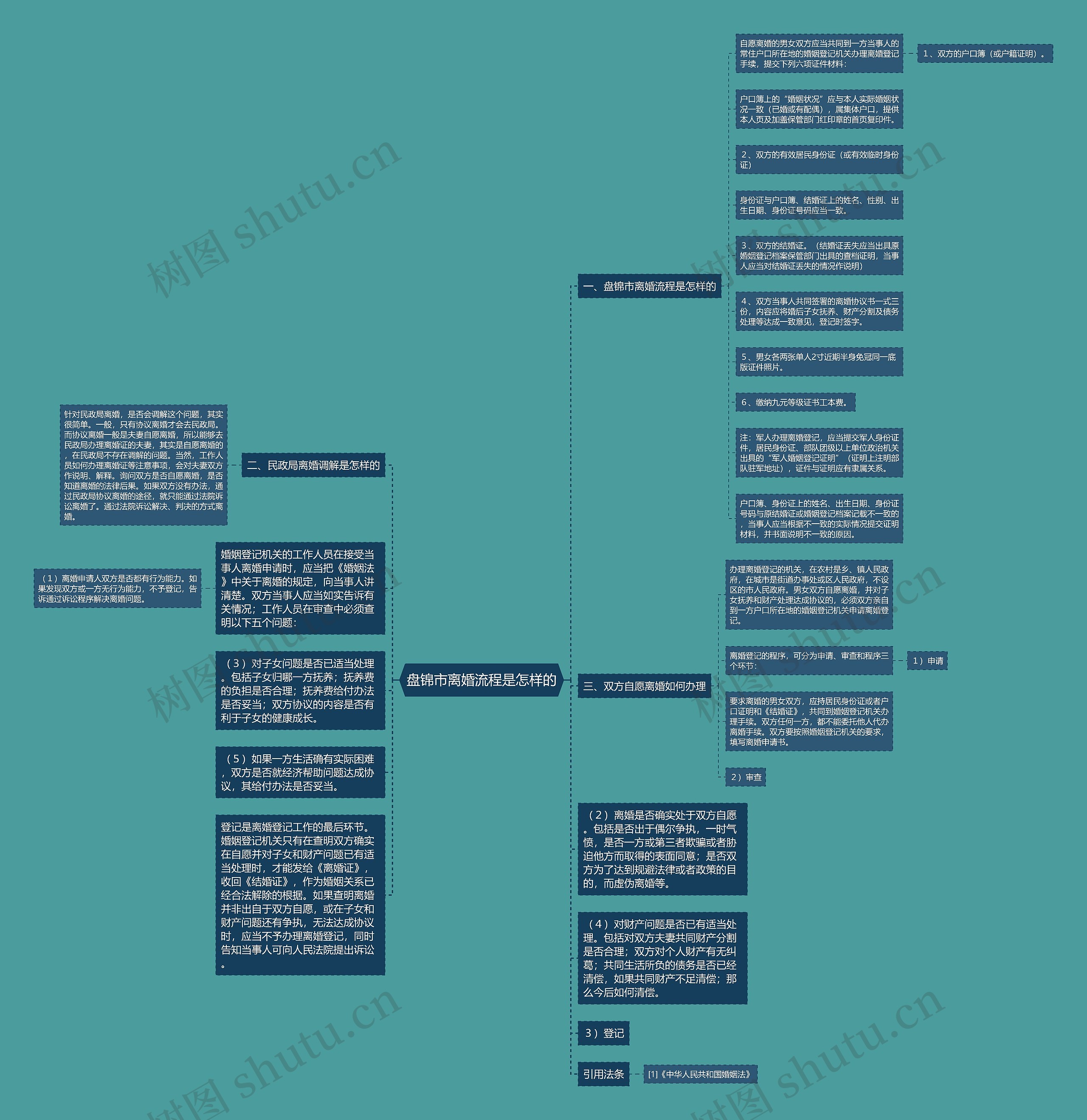 树图思维导图提供《盘锦市离婚流程是怎样的》在线思维导图免费制作,点击“编辑”按钮,可对《盘锦市离婚流程是怎样的》进行在线思维导图编辑,本思维导图属于思维导图模板主题,文件编号是:d5b4e454d373b531f105f69ae4967adf