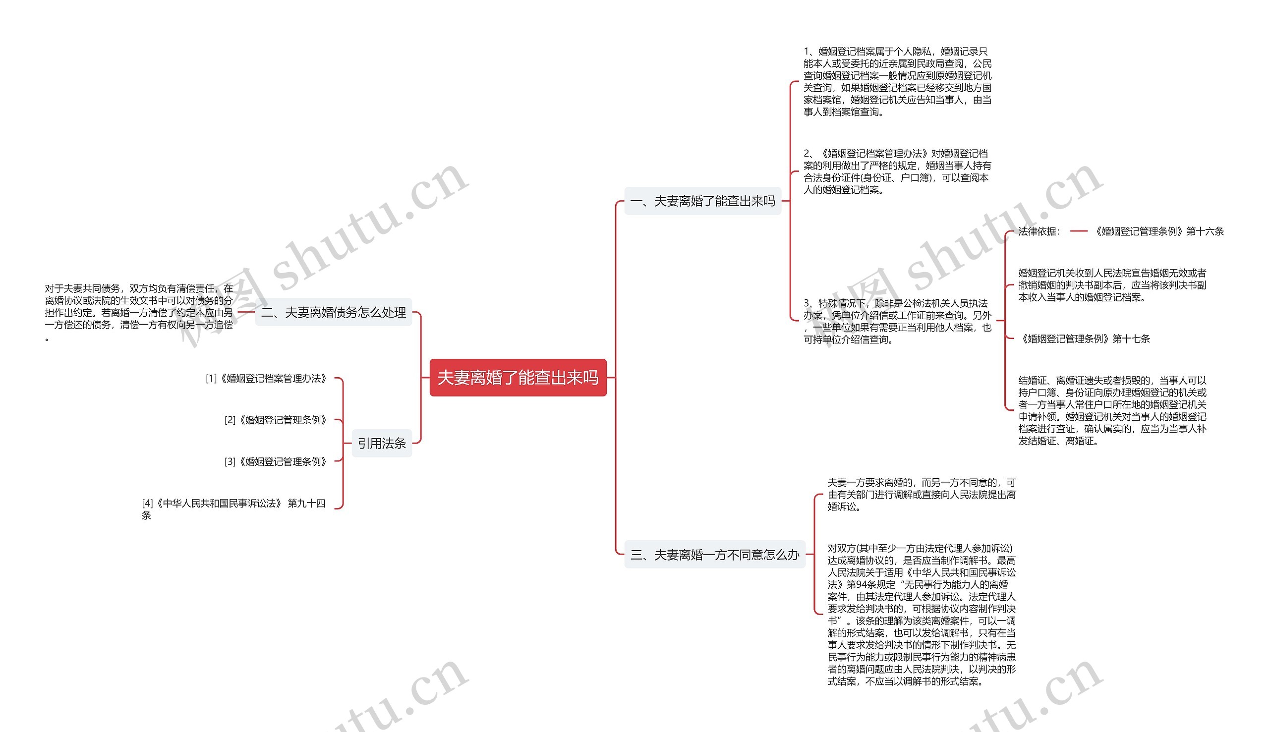 树图思维导图提供《夫妻离婚了能查出来吗》在线思维导图免费制作,点击“编辑”按钮,可对《夫妻离婚了能查出来吗》进行在线思维导图编辑,本思维导图属于思维导图模板主题,文件编号是:9f2d0a87dd4799a2fed59acc50e7179f