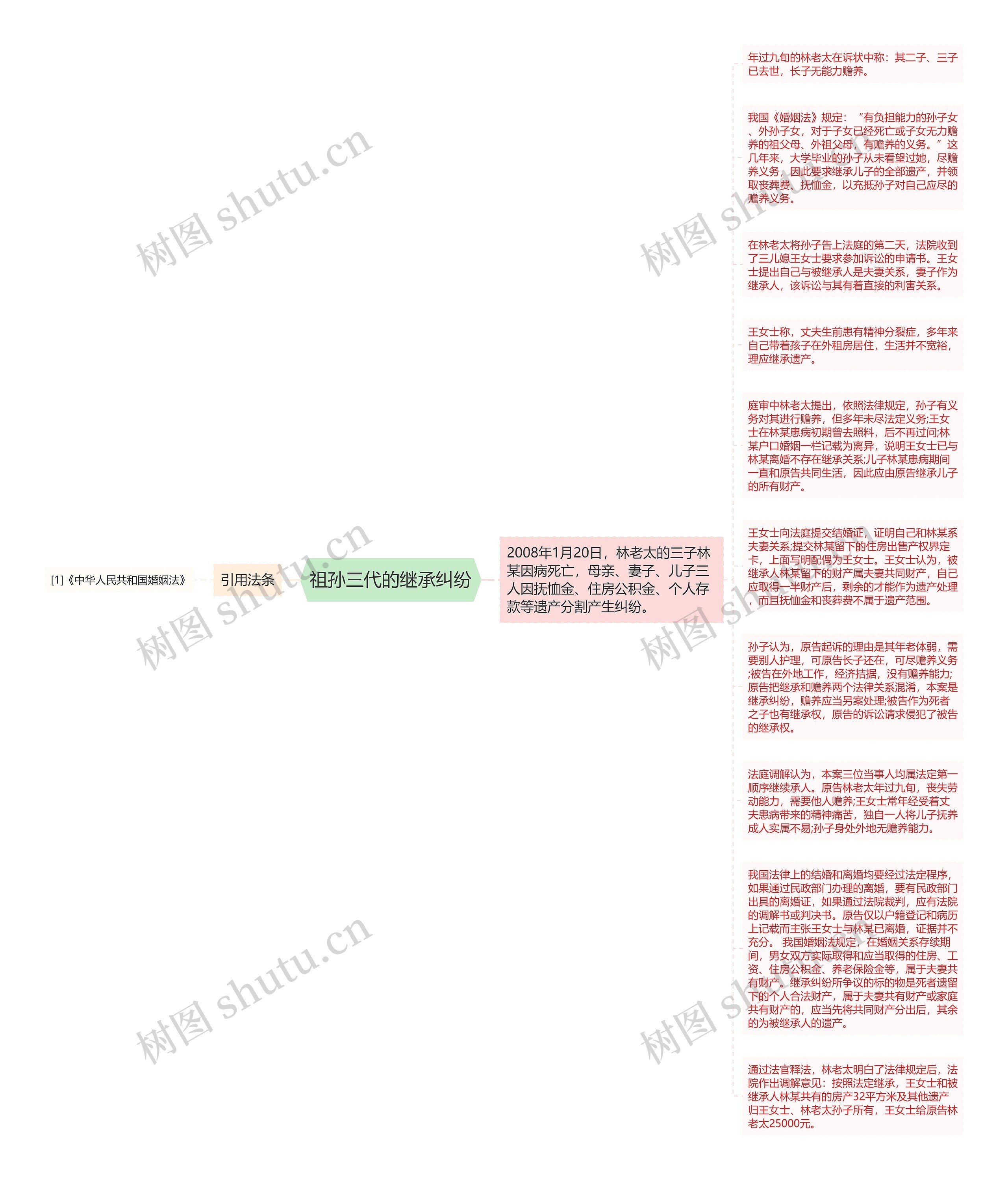 法庭调解认为,本案三位当事人均属法定第一顺序继续承人。原告林老太年过九旬,丧失劳动能力,需要他人赡养;王女士常年经受着丈夫患病带来的精神痛苦,独自一人将儿子抚养成人实属不易;孙子身处外地无赡养能力。