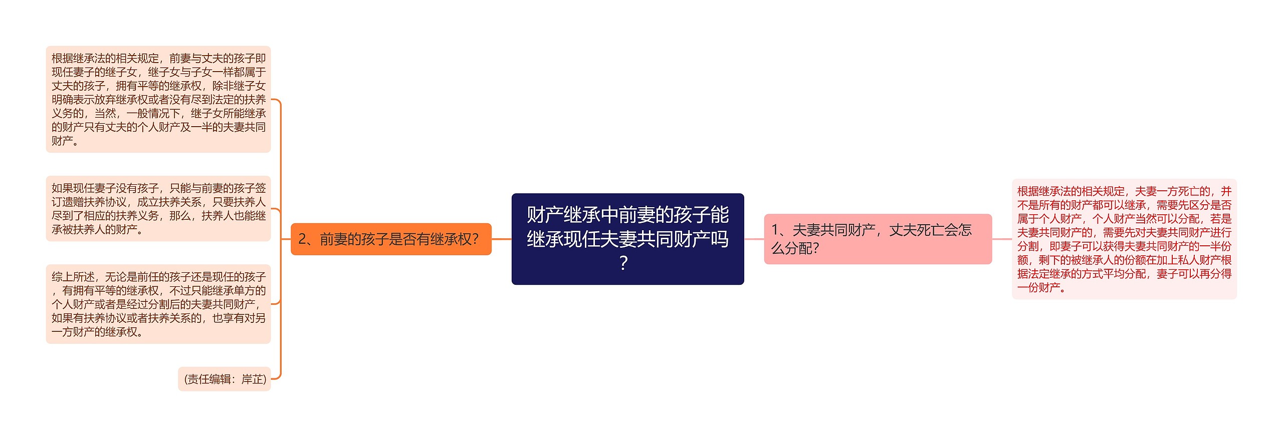 树图思维导图提供《财产继承中前妻的孩子能继承现任夫妻共同财产吗?》在线思维导图免费制作,点击“编辑”按钮,可对《财产继承中前妻的孩子能继承现任夫妻共同财产吗?》进行在线思维导图编辑,本思维导图属于思维导图模板主题,文件编号是:aa63b52616a373ccbb98595283a96d9a