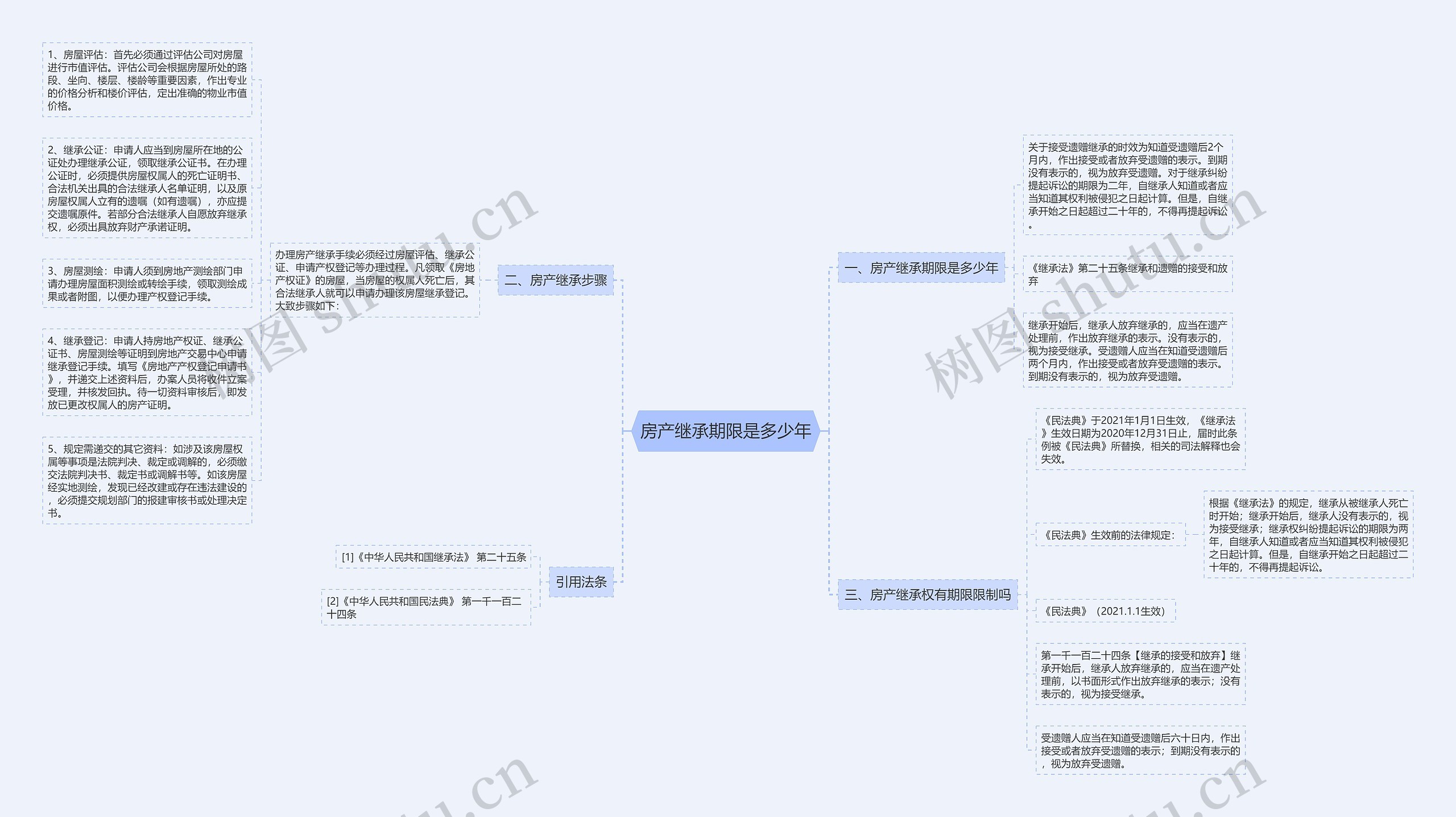 树图思维导图提供《房产继承期限是多少年》在线思维导图免费制作,点击“编辑”按钮,可对《房产继承期限是多少年》进行在线思维导图编辑,本思维导图属于思维导图模板主题,文件编号是:615cde08297603730310dc78b4d1c82a