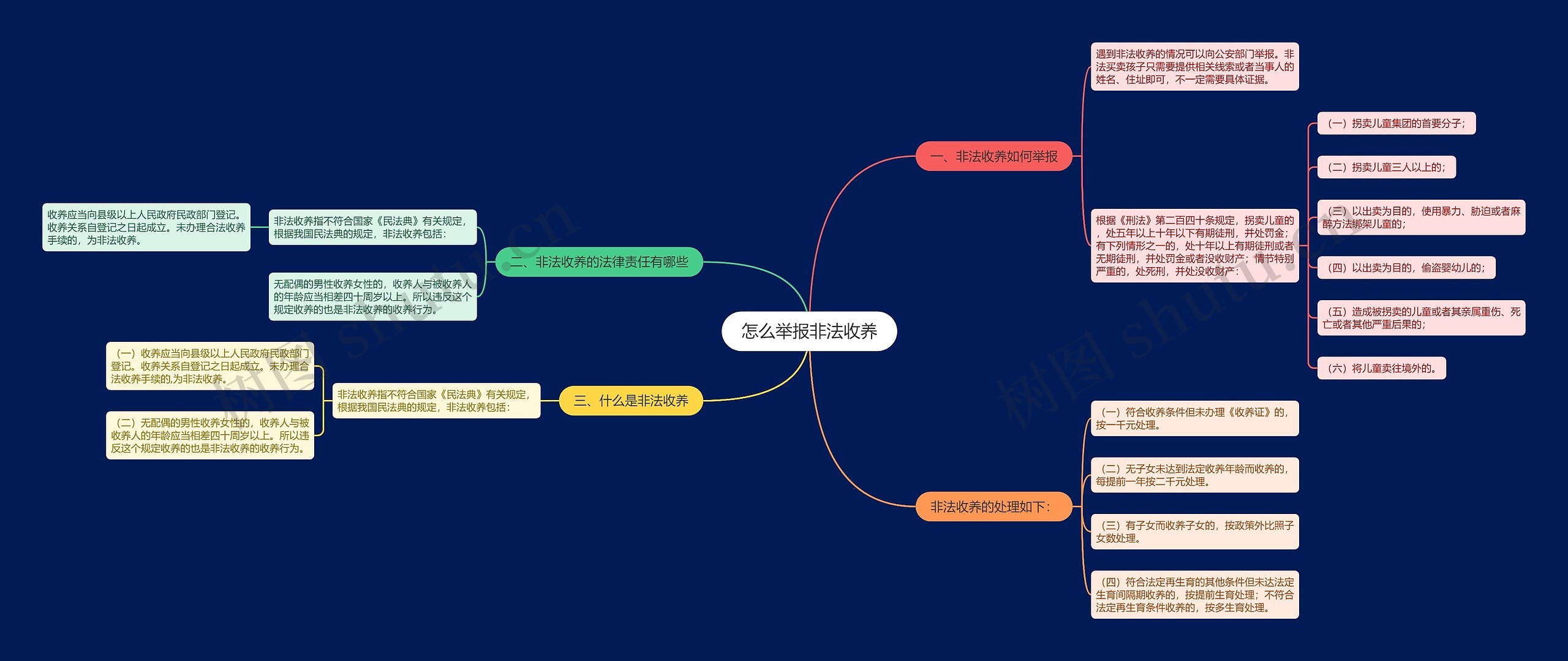 树图思维导图提供《怎么举报非法收养》在线思维导图免费制作,点击“编辑”按钮,可对《怎么举报非法收养》进行在线思维导图编辑,本思维导图属于思维导图模板主题,文件编号是:a055b25e9061858b7d7a447fe84f0021