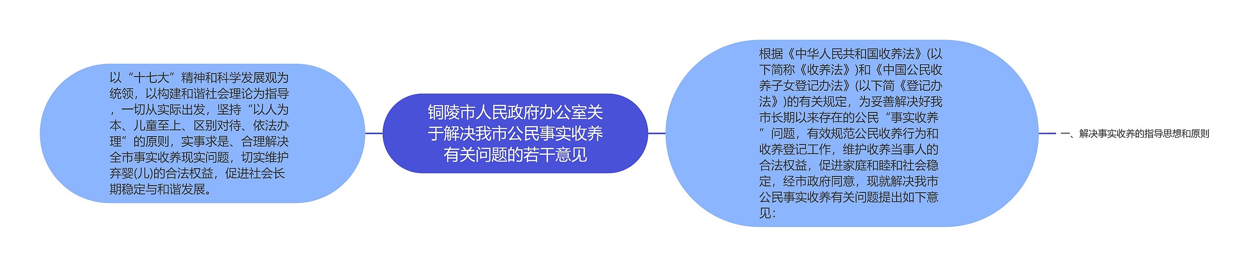 树图思维导图提供《铜陵市人民政府办公室关于解决我市公民事实收养有关问题的若干意见》在线思维导图免费制作,点击“编辑”按钮,可对《铜陵市人民政府办公室关于解决我市公民事实收养有关问题的若干意见》进行在线思维导图编辑,本思维导图属于思维导图模板主题,文件编号是:7ae06b0fe283c781e91674647fd06831
