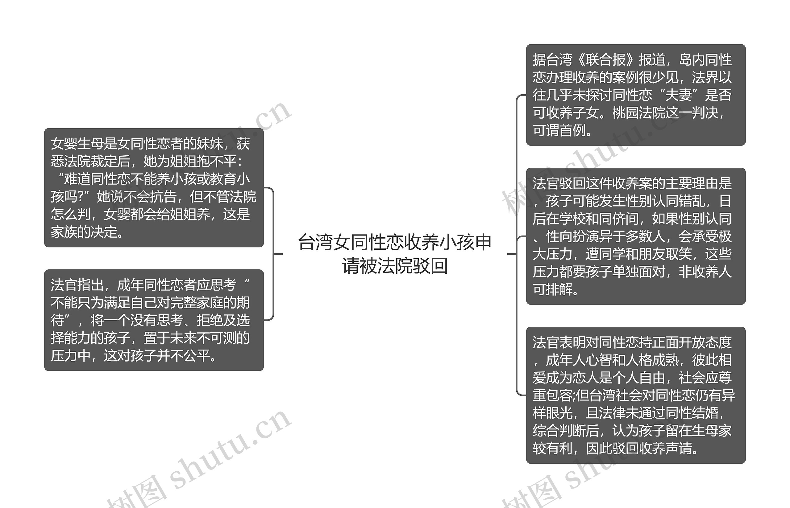 树图思维导图提供《台湾女同性恋收养小孩申请被法院驳回》在线思维导图免费制作,点击“编辑”按钮,可对《台湾女同性恋收养小孩申请被法院驳回》进行在线思维导图编辑,本思维导图属于思维导图模板主题,文件编号是:0c0da6faa0309479c7b476bcae084722