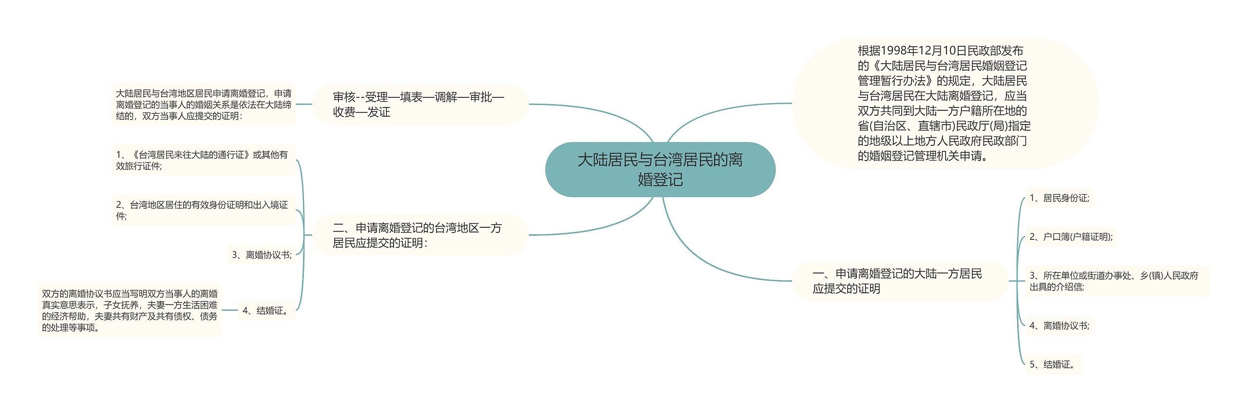 树图思维导图提供《大陆居民与台湾居民的离婚登记》在线思维导图免费制作,点击“编辑”按钮,可对《大陆居民与台湾居民的离婚登记》进行在线思维导图编辑,本思维导图属于思维导图模板主题,文件编号是:cbb9398e1e75bb47f9077d137e979fb3