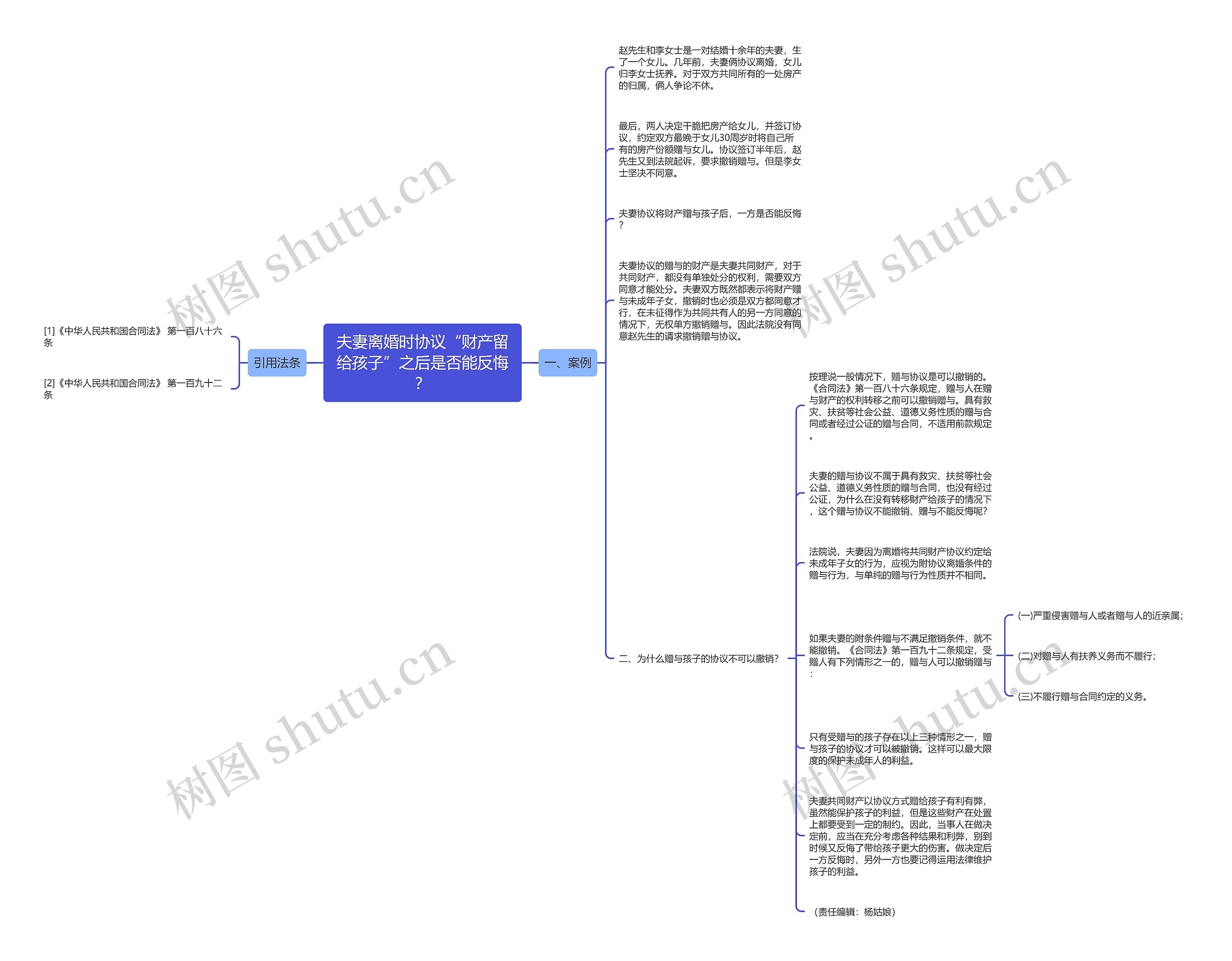 树图思维导图提供《夫妻离婚时协议“财产留给孩子”之后是否能反悔?》在线思维导图免费制作,点击“编辑”按钮,可对《夫妻离婚时协议“财产留给孩子”之后是否能反悔?》进行在线思维导图编辑,本思维导图属于思维导图模板主题,文件编号是:e60f0c7fcab5f3242834a08c2a0632fa