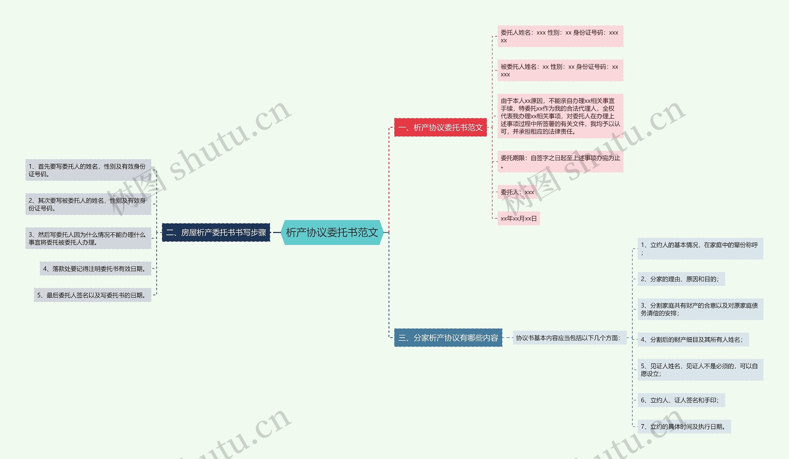 树图思维导图提供《析产协议委托书范文》在线思维导图免费制作,点击“编辑”按钮,可对《析产协议委托书范文》进行在线思维导图编辑,本思维导图属于思维导图模板主题,文件编号是:c776cee44edebf0f1dbe5fd9261a0155