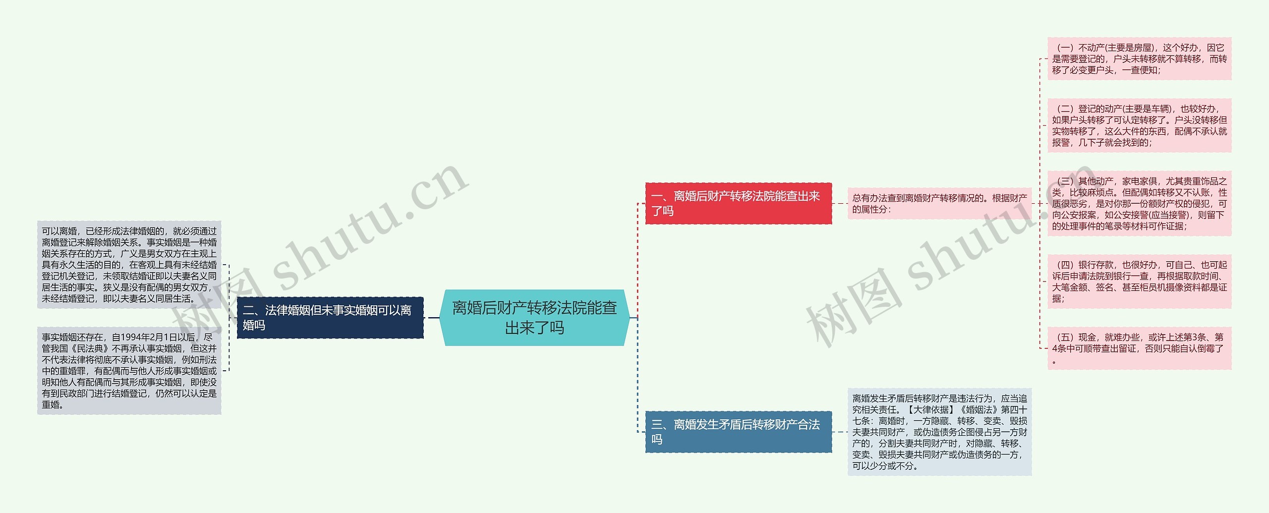 树图思维导图提供《离婚后财产转移法院能查出来了吗》在线思维导图免费制作,点击“编辑”按钮,可对《离婚后财产转移法院能查出来了吗》进行在线思维导图编辑,本思维导图属于思维导图模板主题,文件编号是:50a9c072b550adfeb37ad5e637b6f2a5