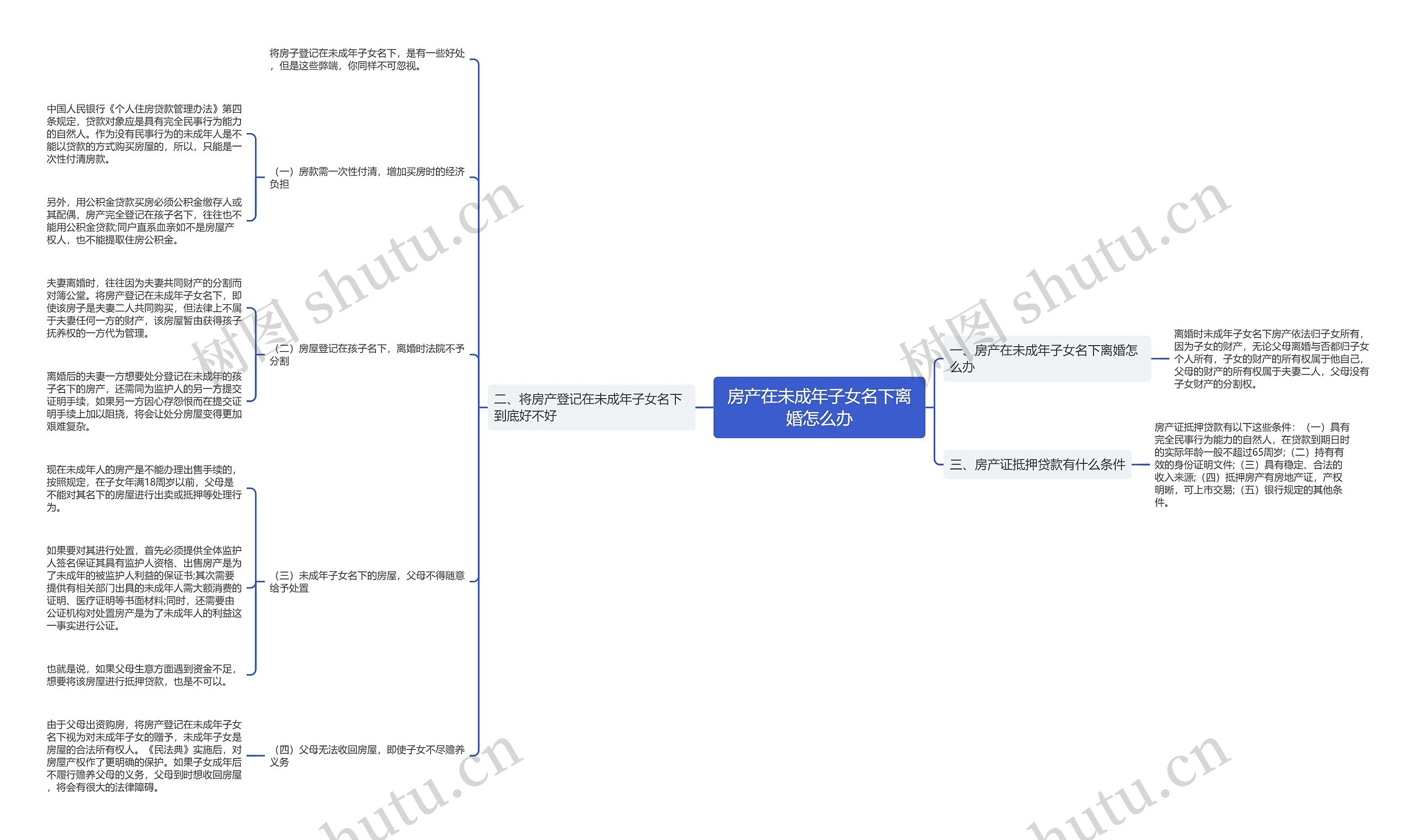 树图思维导图提供《房产在未成年子女名下离婚怎么办》在线思维导图免费制作,点击“编辑”按钮,可对《房产在未成年子女名下离婚怎么办》进行在线思维导图编辑,本思维导图属于思维导图模板主题,文件编号是:1167304ed9bcae9a91f856c6408d19ed