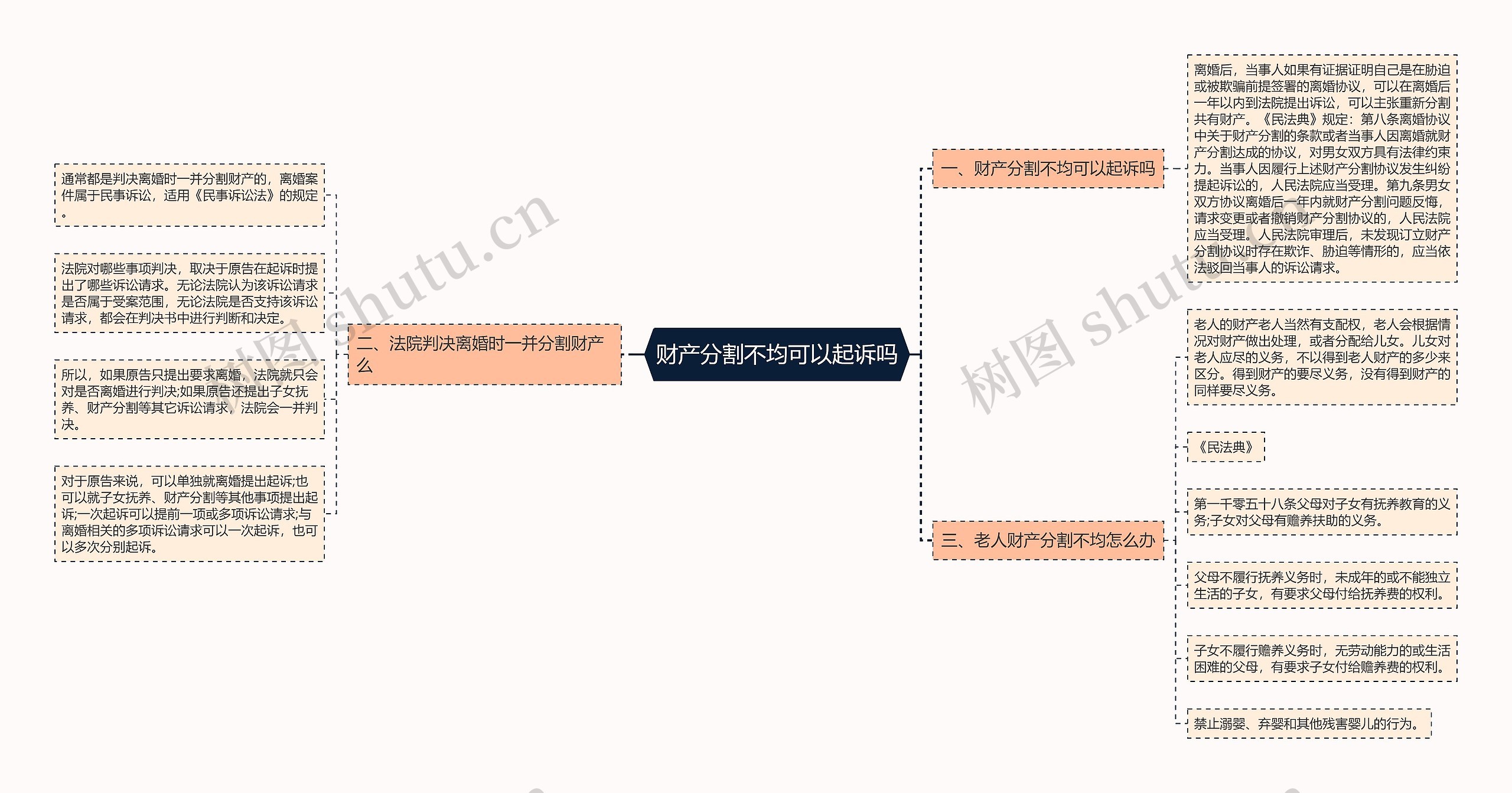树图思维导图提供《财产分割不均可以起诉吗》在线思维导图免费制作,点击“编辑”按钮,可对《财产分割不均可以起诉吗》进行在线思维导图编辑,本思维导图属于思维导图模板主题,文件编号是:b6e9c20fdded4b5aecd3e6dd63f546f3
