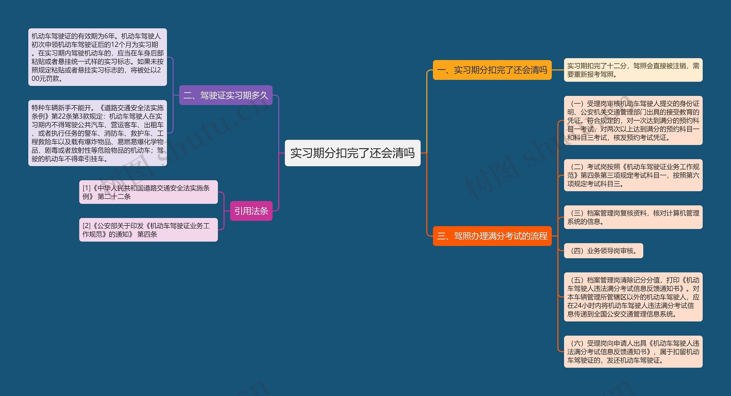 树图思维导图提供《实习期分扣完了还会清吗》在线思维导图免费制作,点击“编辑”按钮,可对《实习期分扣完了还会清吗》进行在线思维导图编辑,本思维导图属于思维导图模板主题,文件编号是:e674f8dc2525d0bc4329087892543713