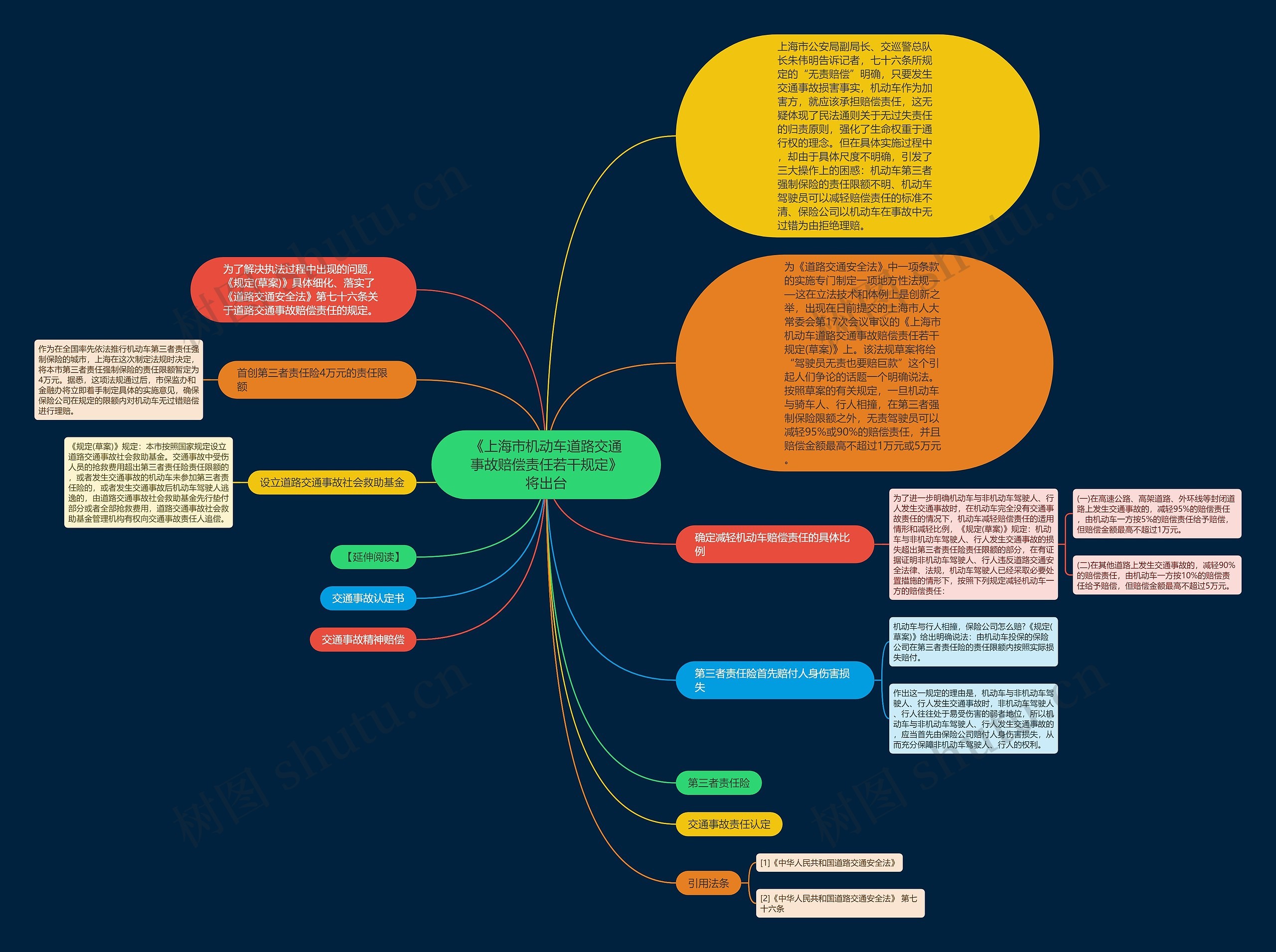 树图思维导图提供《《上海市机动车道路交通事故赔偿责任若干规定》将出台》在线思维导图免费制作,点击“编辑”按钮,可对《《上海市机动车道路交通事故赔偿责任若干规定》将出台》进行在线思维导图编辑,本思维导图属于思维导图模板主题,文件编号是:03259dc737d9333df0a82d5b42a037fa