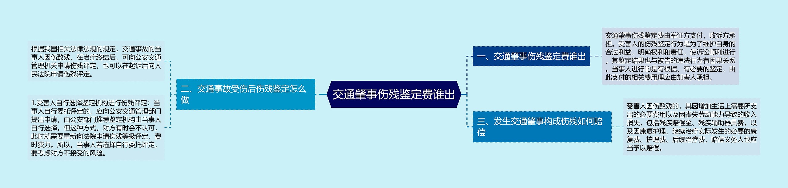 树图思维导图提供《交通肇事伤残鉴定费谁出》在线思维导图免费制作,点击“编辑”按钮,可对《交通肇事伤残鉴定费谁出》进行在线思维导图编辑,本思维导图属于思维导图模板主题,文件编号是:c30015ad8caa5c4881db1d5842cf1385