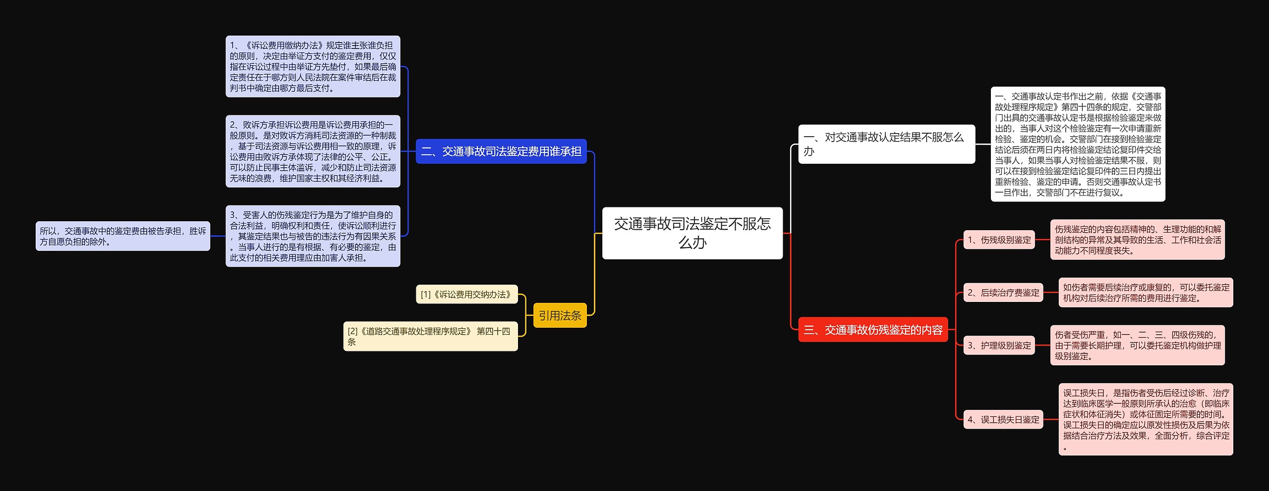 树图思维导图提供《交通事故司法鉴定不服怎么办》在线思维导图免费制作,点击“编辑”按钮,可对《交通事故司法鉴定不服怎么办》进行在线思维导图编辑,本思维导图属于思维导图模板主题,文件编号是:198b501ea342e67681edfdd3258980df