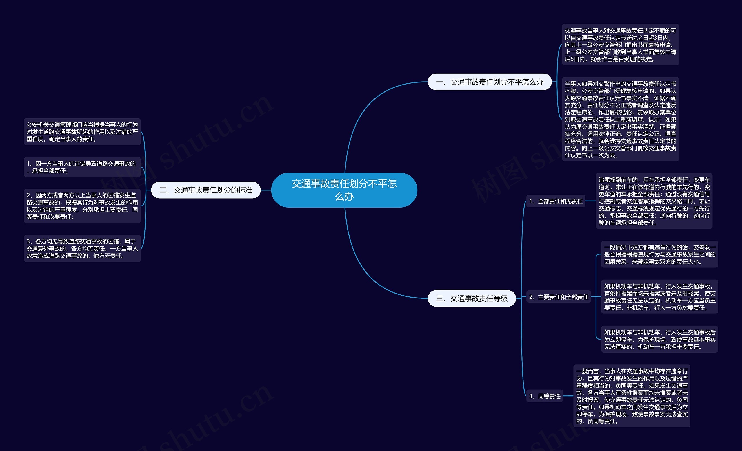 树图思维导图提供《交通事故责任划分不平怎么办》在线思维导图免费制作,点击“编辑”按钮,可对《交通事故责任划分不平怎么办》进行在线思维导图编辑,本思维导图属于思维导图模板主题,文件编号是:003bbf6ba304ef4c14c08a2e65ae0d23
