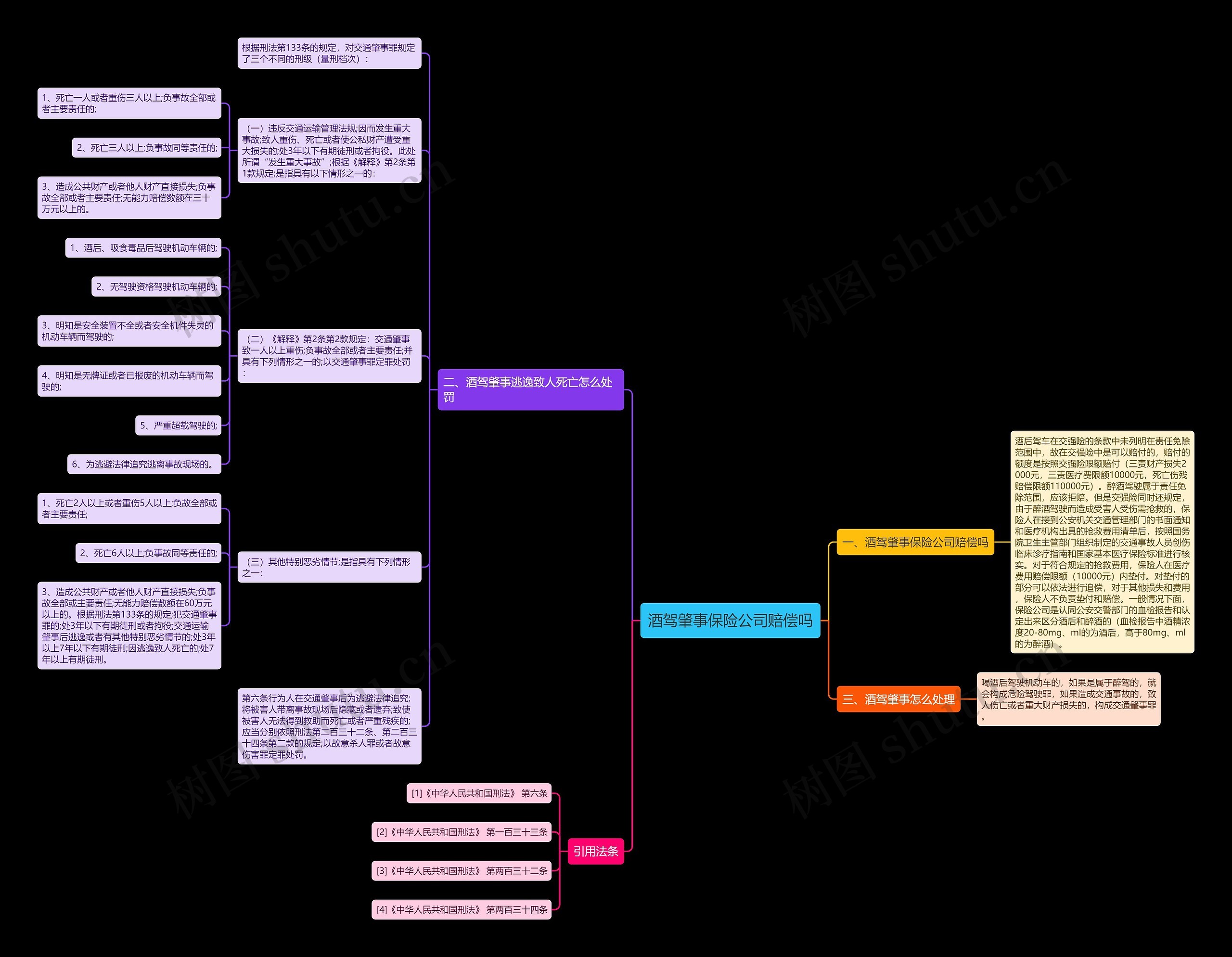 树图思维导图提供《酒驾肇事保险公司赔偿吗》在线思维导图免费制作,点击“编辑”按钮,可对《酒驾肇事保险公司赔偿吗》进行在线思维导图编辑,本思维导图属于思维导图模板主题,文件编号是:d252bd71c339e742e918500e88132a2f
