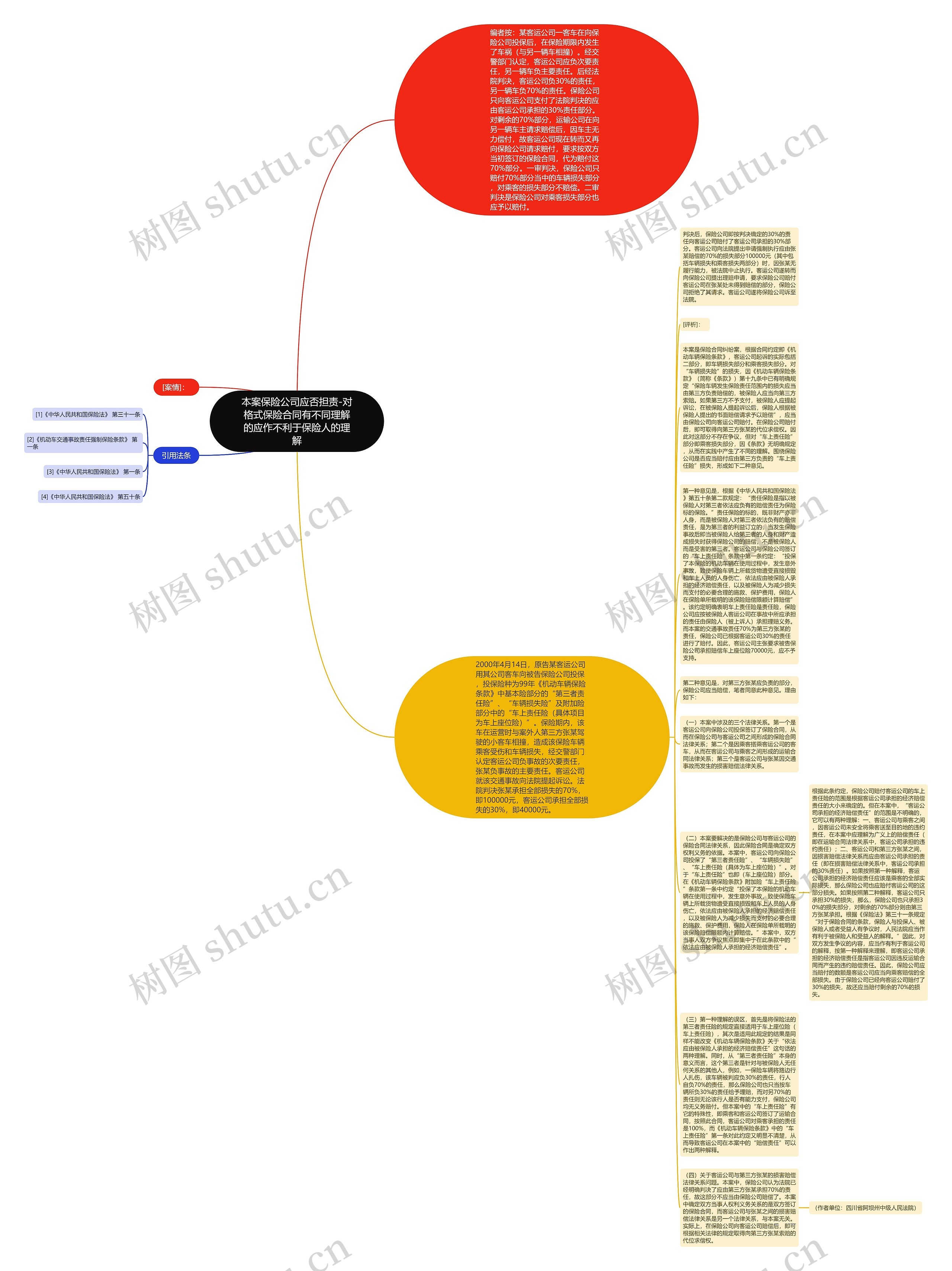 (三)第一种理解的误区,首先是将保险法的第三者责任险的规定直接适用于车上座位险(车上责任险),其次是适用此规定的结果是同样不能改变《机动车辆保险条款》关于“依法应由被保险人承担的经济赔偿责任”这句话的两种理解。同时,从“第三者责任险”本身的意义而言,这个第三者是针对与被保险人无任何关系的其他人,例如,一保险车辆将路边行人扎伤,该车辆被判应负30%的责任,行人自负70%的责任,那么保险公司也只当按车辆所负30%的责任给予理赔,而对另70%的责任则无论该行人是否有能力支付,保险公司均无义务赔付。但本案中的“车上责任险”有它的特殊性,即乘客和客运公司签订了运输合同,按照此合同,客运公司对乘客承担的责任是100%,而《机动车辆保险条款》中的“车上责任险”第一条对此约定又明显不清楚,从而导致客运公司在本案中的“赔偿责任”可以作出两种解释。