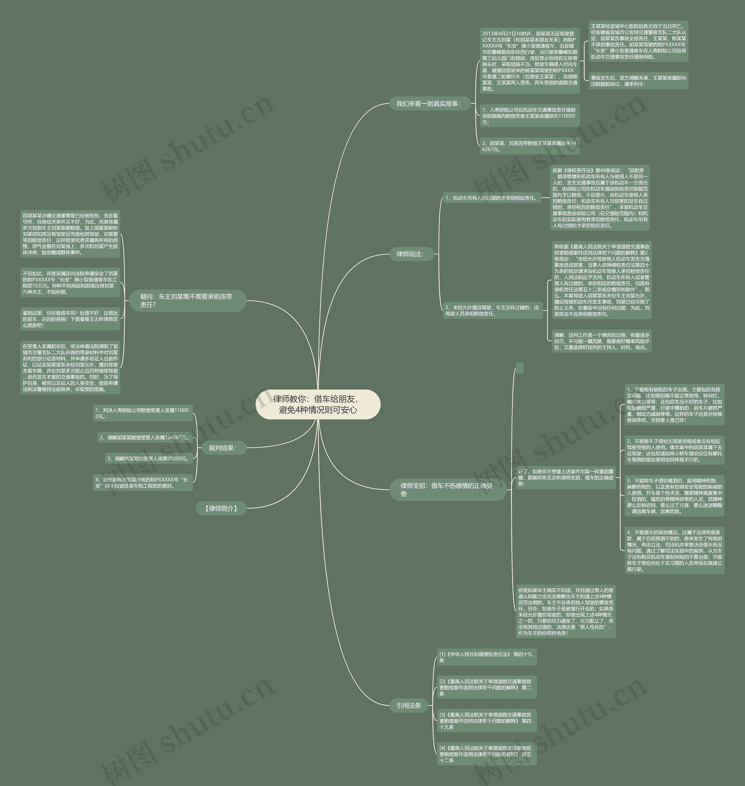 树图思维导图提供《律师教你:借车给朋友,避免4种情况则可安心》在线思维导图免费制作,点击“编辑”按钮,可对《律师教你:借车给朋友,避免4种情况则可安心》进行在线思维导图编辑,本思维导图属于思维导图模板主题,文件编号是:d6d313aa558c5863ef9b32f72d8333ec