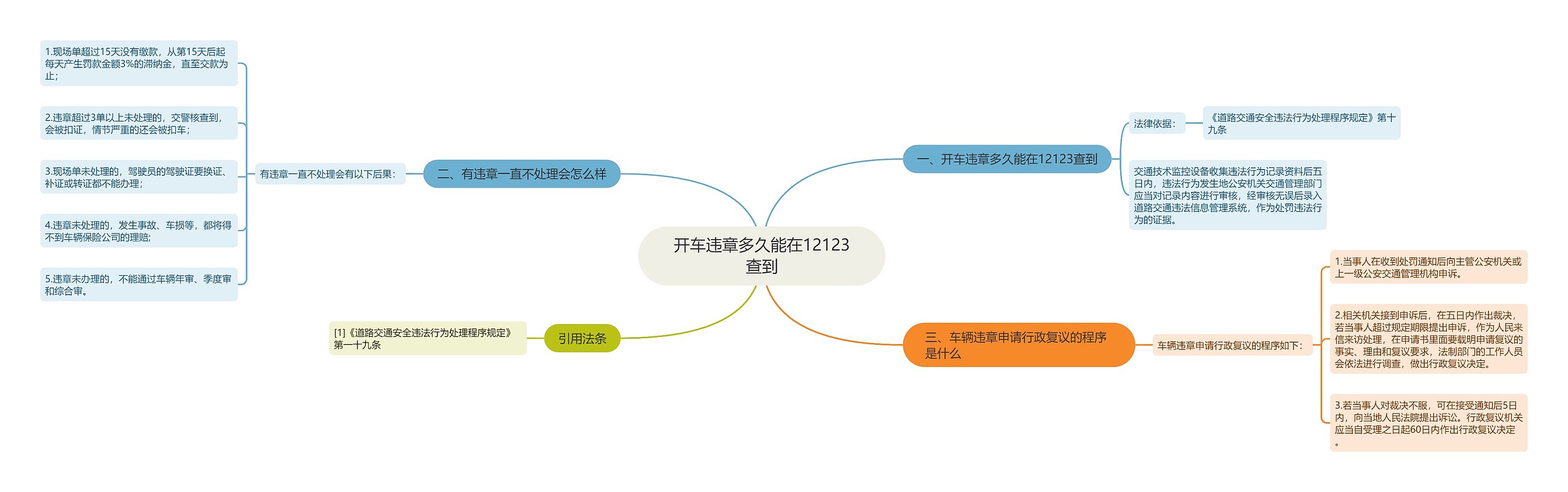 树图思维导图提供《开车违章多久能在12123查到》在线思维导图免费制作,点击“编辑”按钮,可对《开车违章多久能在12123查到》进行在线思维导图编辑,本思维导图属于思维导图模板主题,文件编号是:8eea2f80a61e6b3d06b3002d5853b8ca