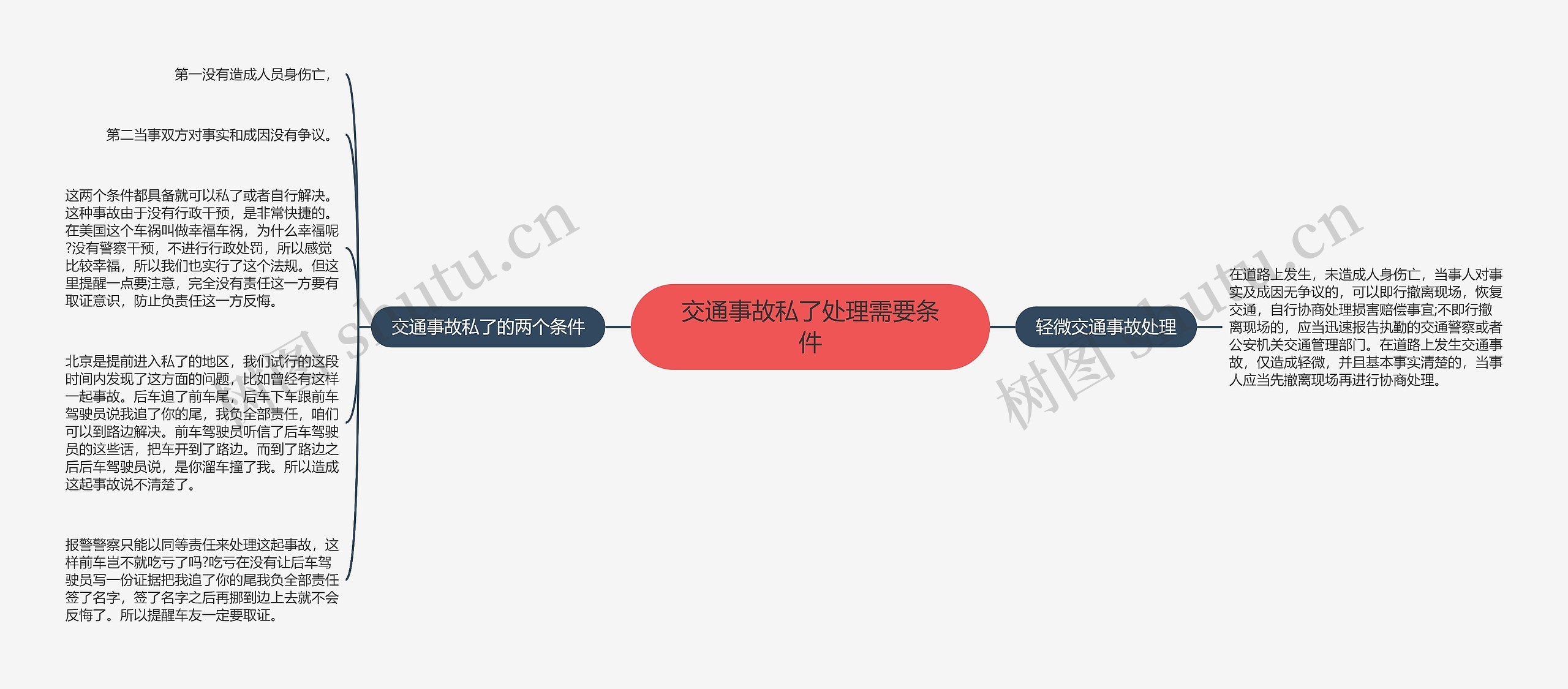 树图思维导图提供《交通事故私了处理需要条件》在线思维导图免费制作,点击“编辑”按钮,可对《交通事故私了处理需要条件》进行在线思维导图编辑,本思维导图属于思维导图模板主题,文件编号是:cc85a3900982d6383437a6655a6d2687