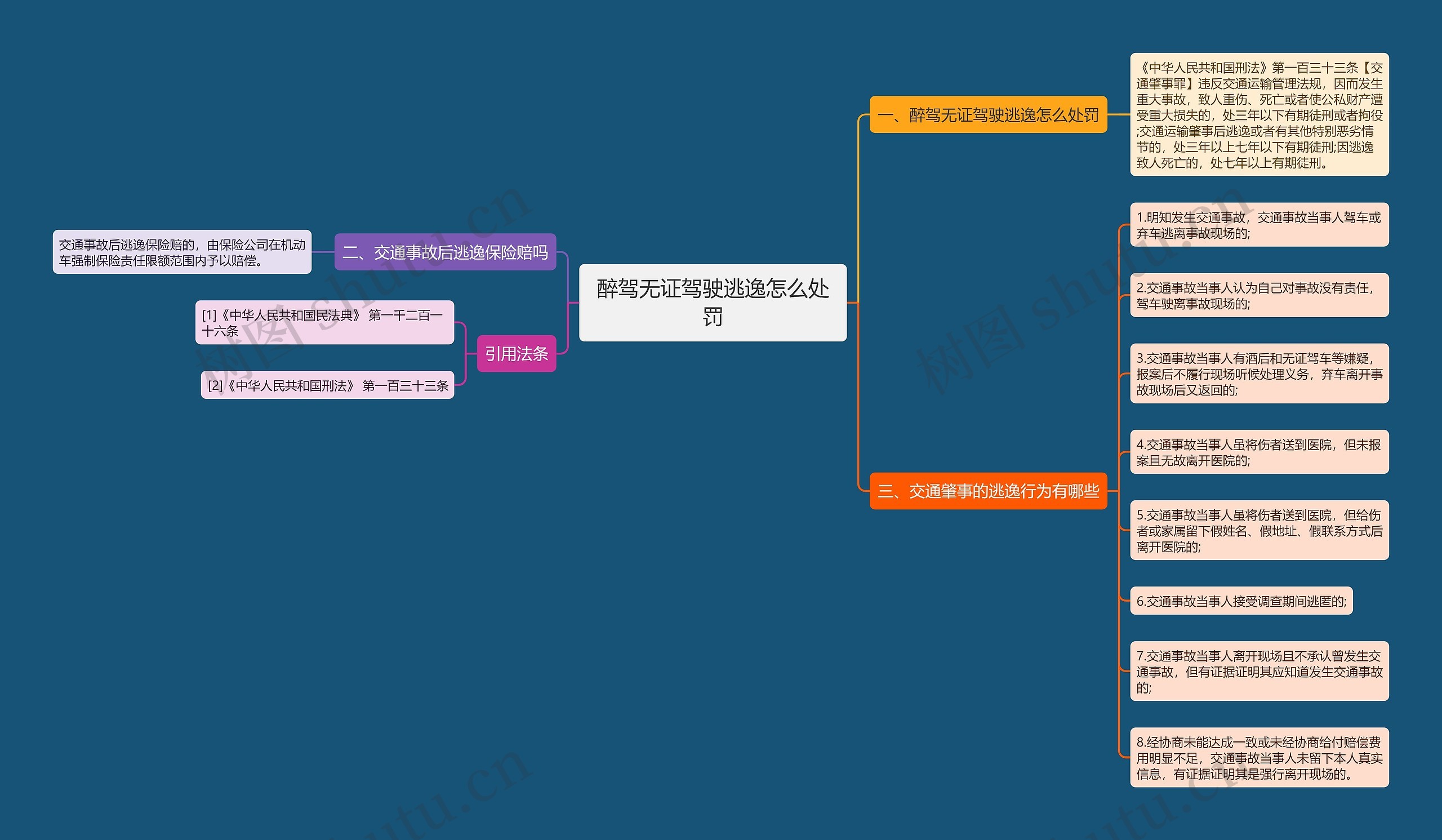 树图思维导图提供《醉驾无证驾驶逃逸怎么处罚》在线思维导图免费制作,点击“编辑”按钮,可对《醉驾无证驾驶逃逸怎么处罚》进行在线思维导图编辑,本思维导图属于思维导图模板主题,文件编号是:1e77c449bffc185abffc3205534fe375