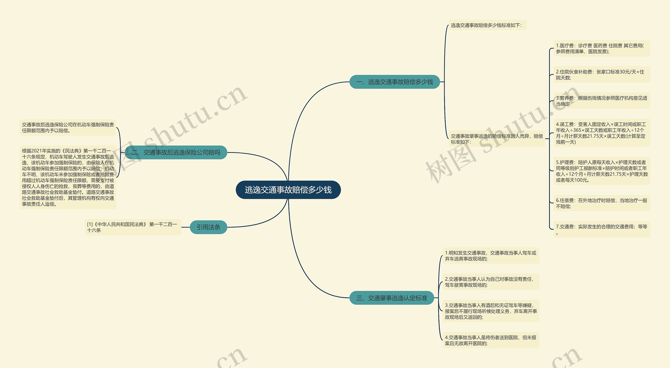 树图思维导图提供《逃逸交通事故赔偿多少钱》在线思维导图免费制作,点击“编辑”按钮,可对《逃逸交通事故赔偿多少钱》进行在线思维导图编辑,本思维导图属于思维导图模板主题,文件编号是:7d41367a8fab82ff575bd754bf6c7731