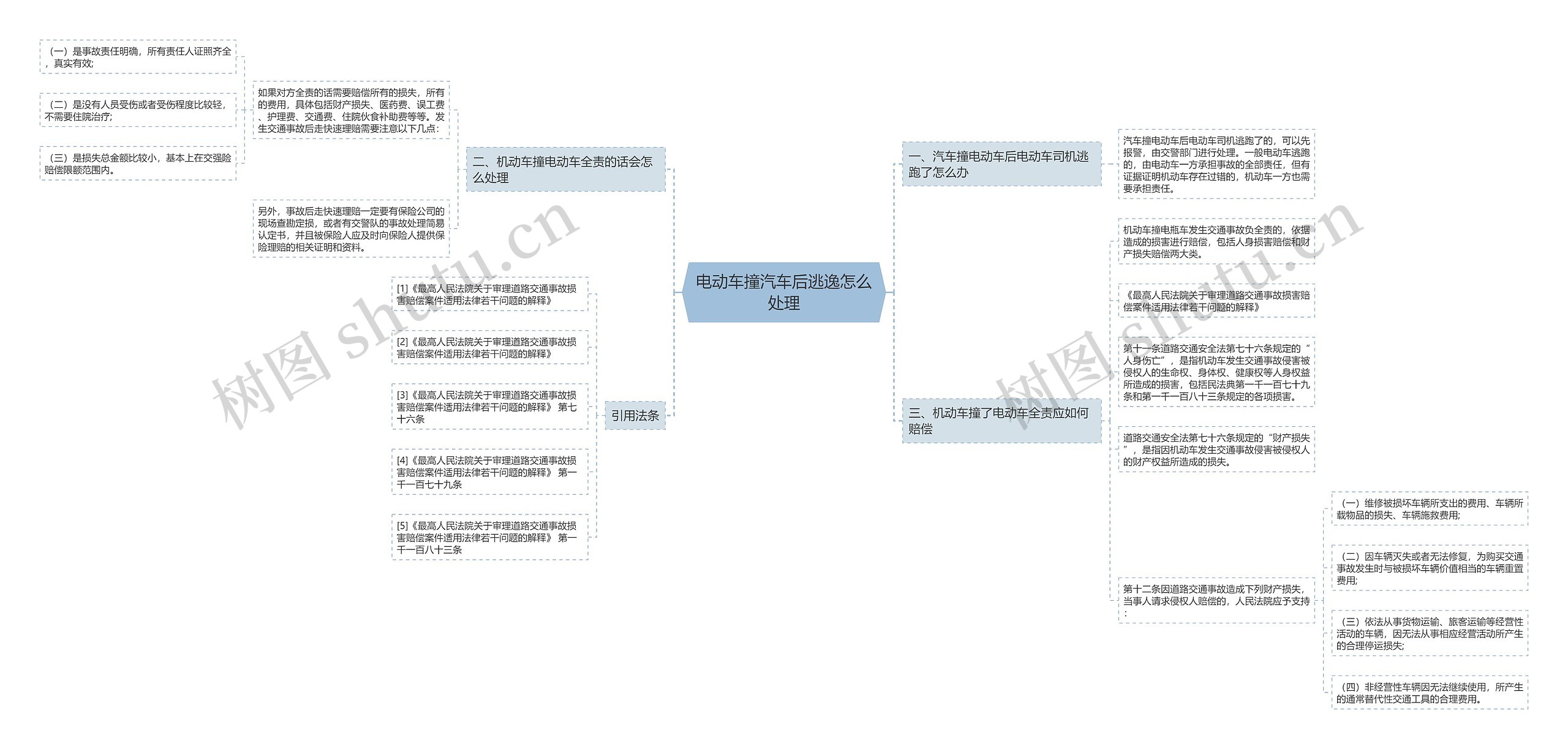 树图思维导图提供《电动车撞汽车后逃逸怎么处理》在线思维导图免费制作,点击“编辑”按钮,可对《电动车撞汽车后逃逸怎么处理》进行在线思维导图编辑,本思维导图属于思维导图模板主题,文件编号是:d83ef471e3d4aca009d25a25216f66c9
