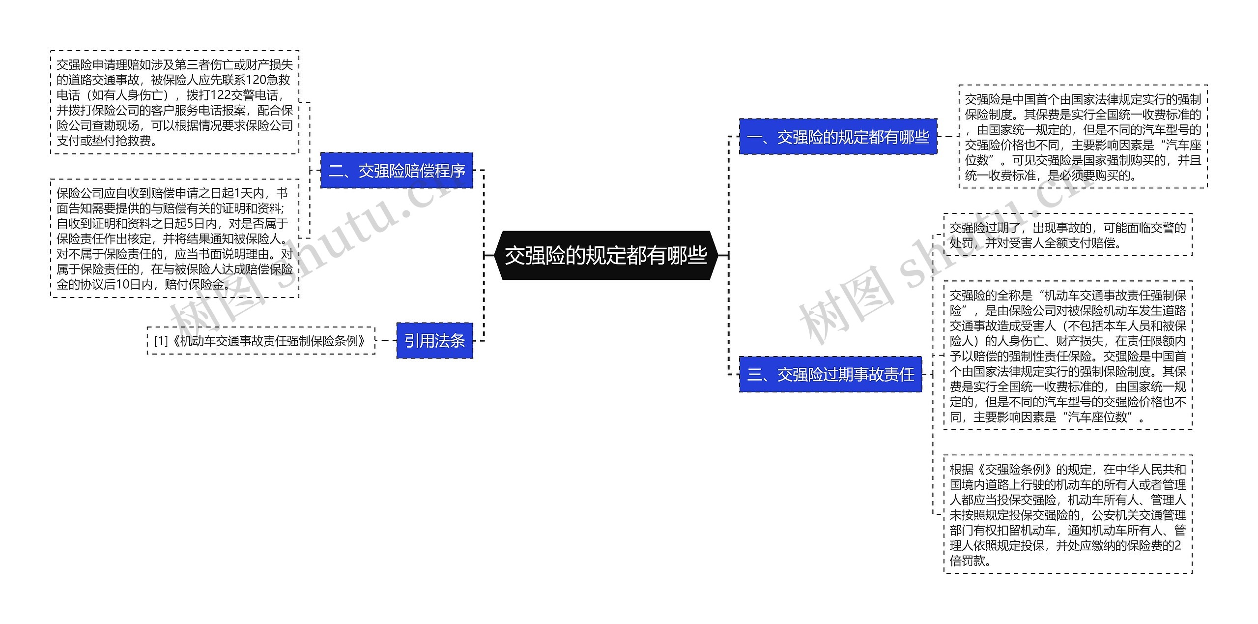 树图思维导图提供《交强险的规定都有哪些》在线思维导图免费制作,点击“编辑”按钮,可对《交强险的规定都有哪些》进行在线思维导图编辑,本思维导图属于思维导图模板主题,文件编号是:ff89a5a0b0915303f38f12b73c905e6f
