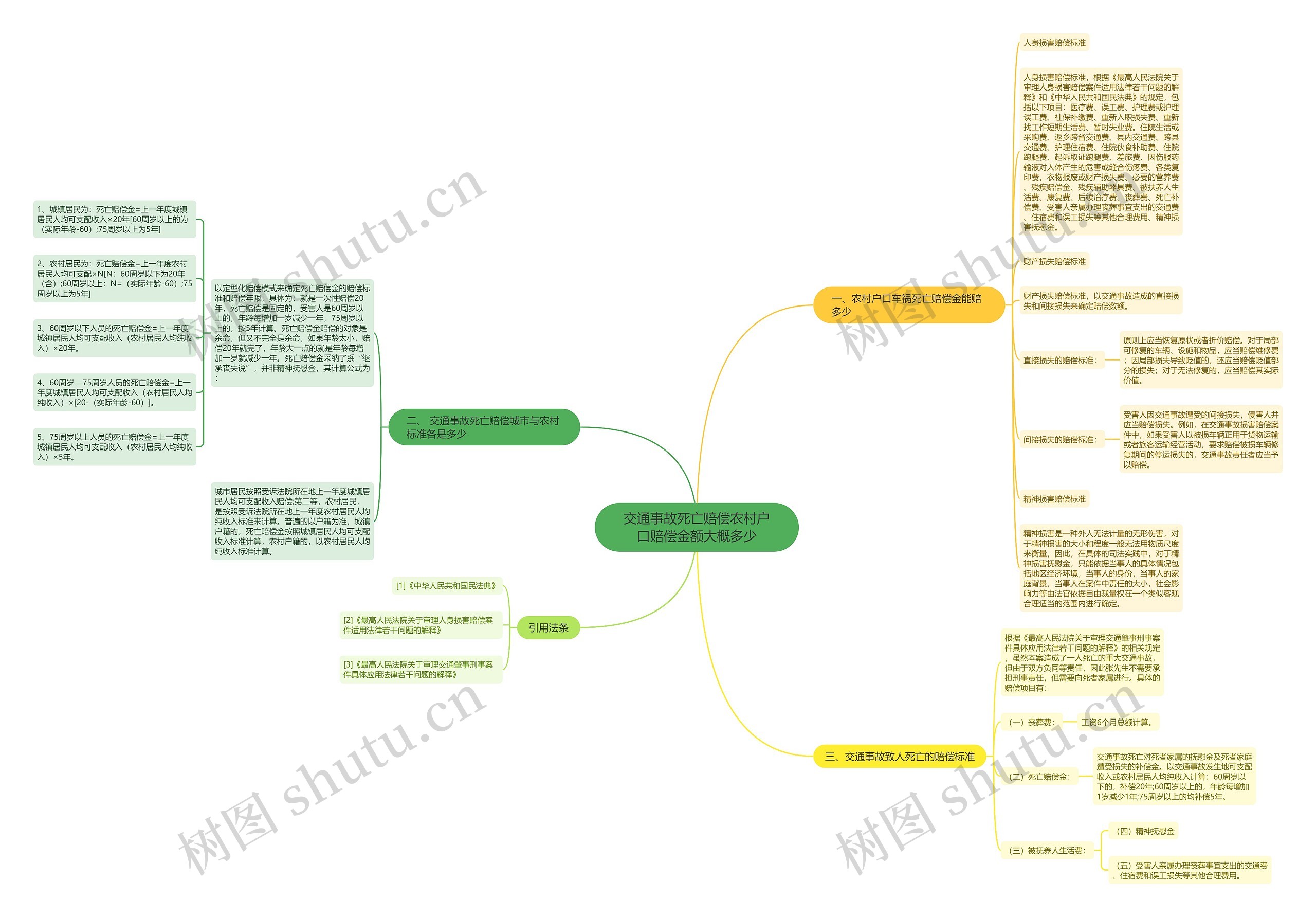 树图思维导图提供《交通事故死亡赔偿农村户口赔偿金额大概多少》在线思维导图免费制作,点击“编辑”按钮,可对《交通事故死亡赔偿农村户口赔偿金额大概多少》进行在线思维导图编辑,本思维导图属于思维导图模板主题,文件编号是:f3163a37aa702798525d3e22860989e0
