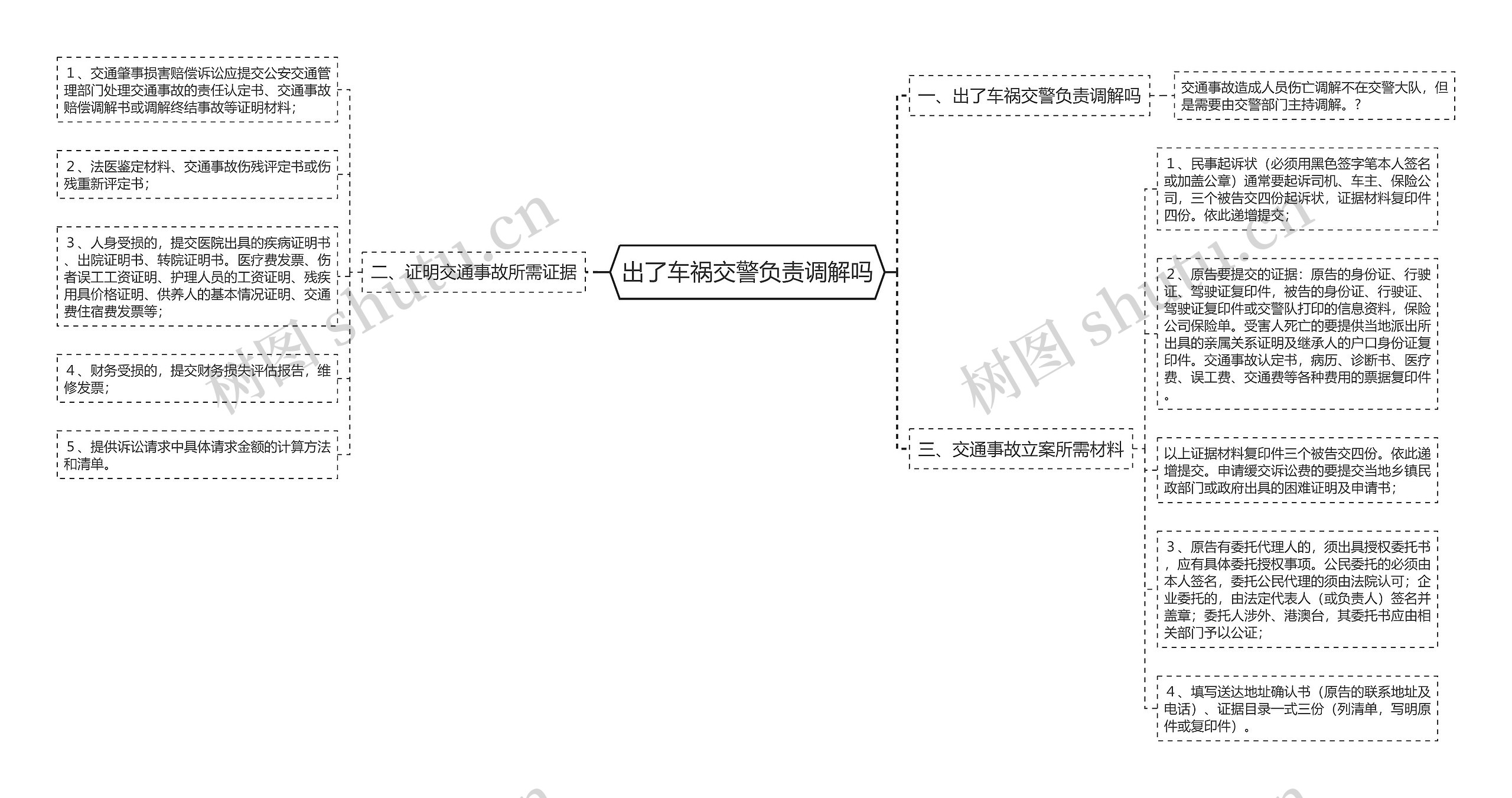 树图思维导图提供《出了车祸交警负责调解吗》在线思维导图免费制作,点击“编辑”按钮,可对《出了车祸交警负责调解吗》进行在线思维导图编辑,本思维导图属于思维导图模板主题,文件编号是:38945611a3932f1643a52af0a4d06f14