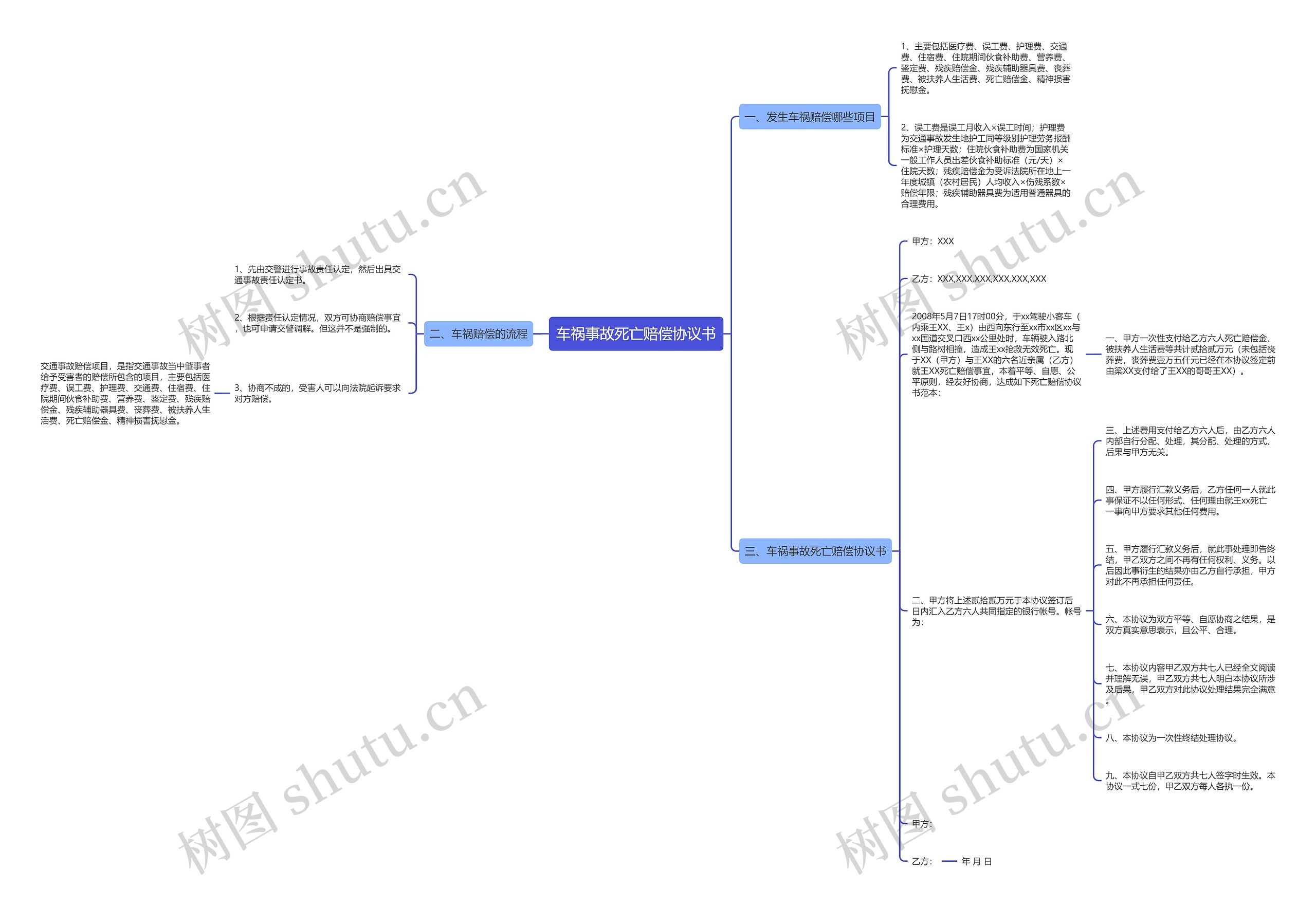 树图思维导图提供《车祸事故死亡赔偿协议书》在线思维导图免费制作,点击“编辑”按钮,可对《车祸事故死亡赔偿协议书》进行在线思维导图编辑,本思维导图属于思维导图模板主题,文件编号是:0e65388be093d8b070ab33eadd33d8fc