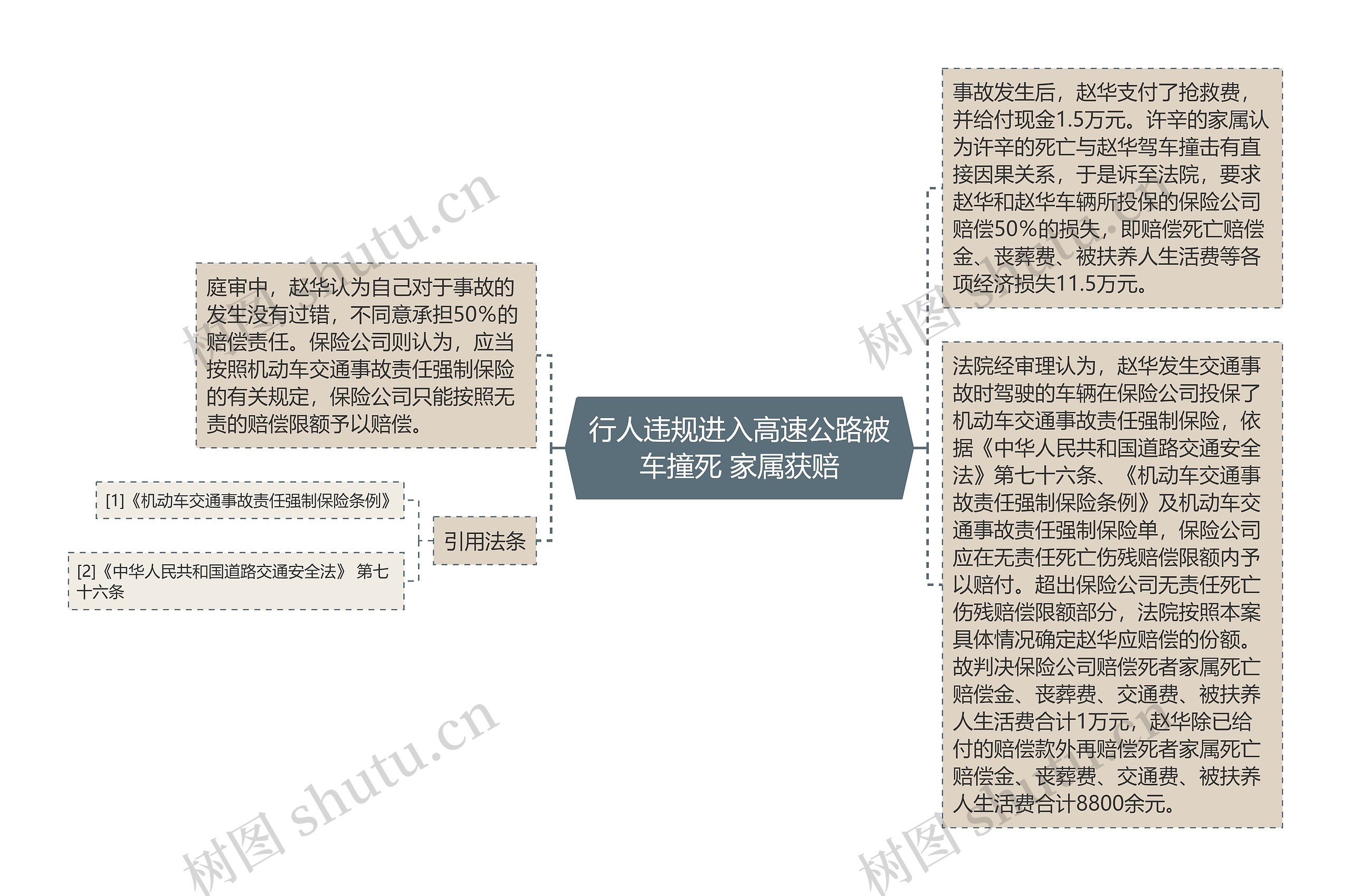 树图思维导图提供《行人违规进入高速公路被车撞死 家属获赔》在线思维导图免费制作,点击“编辑”按钮,可对《行人违规进入高速公路被车撞死 家属获赔》进行在线思维导图编辑,本思维导图属于思维导图模板主题,文件编号是:b3d5168c155200147bdcf53b8c09af4c