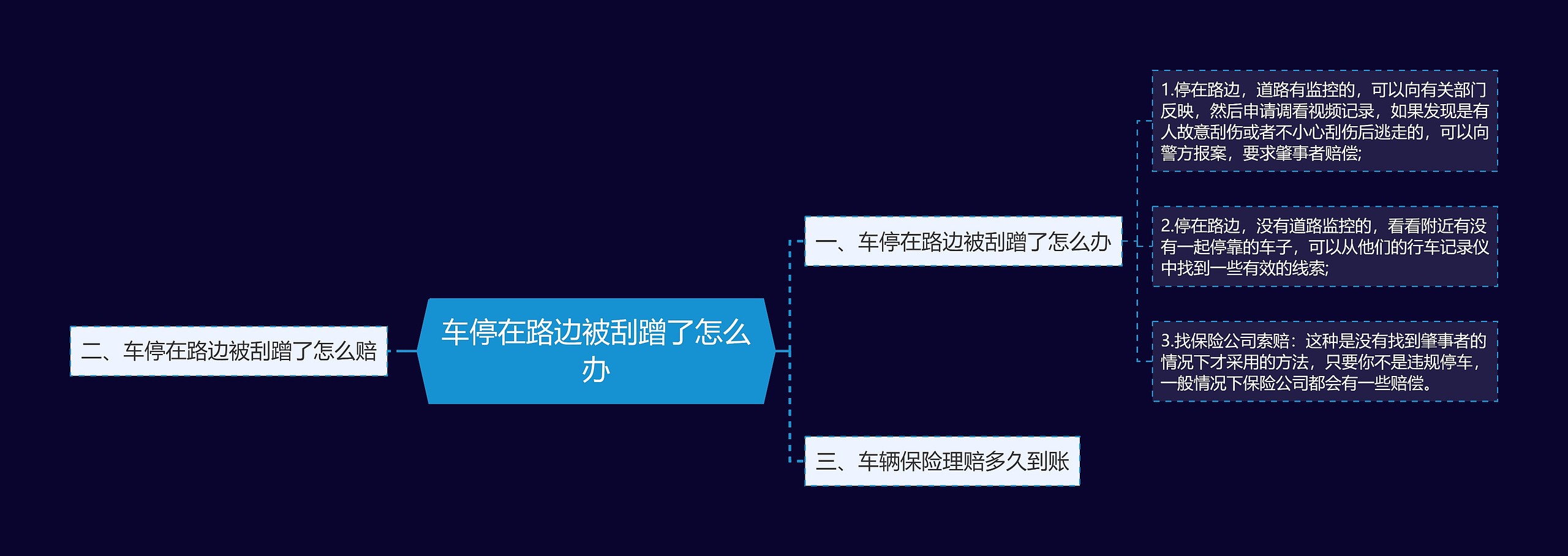 树图思维导图提供《车停在路边被刮蹭了怎么办》在线思维导图免费制作,点击“编辑”按钮,可对《车停在路边被刮蹭了怎么办》进行在线思维导图编辑,本思维导图属于思维导图模板主题,文件编号是:db0c461cd628dc04e2f03ac0a8580554