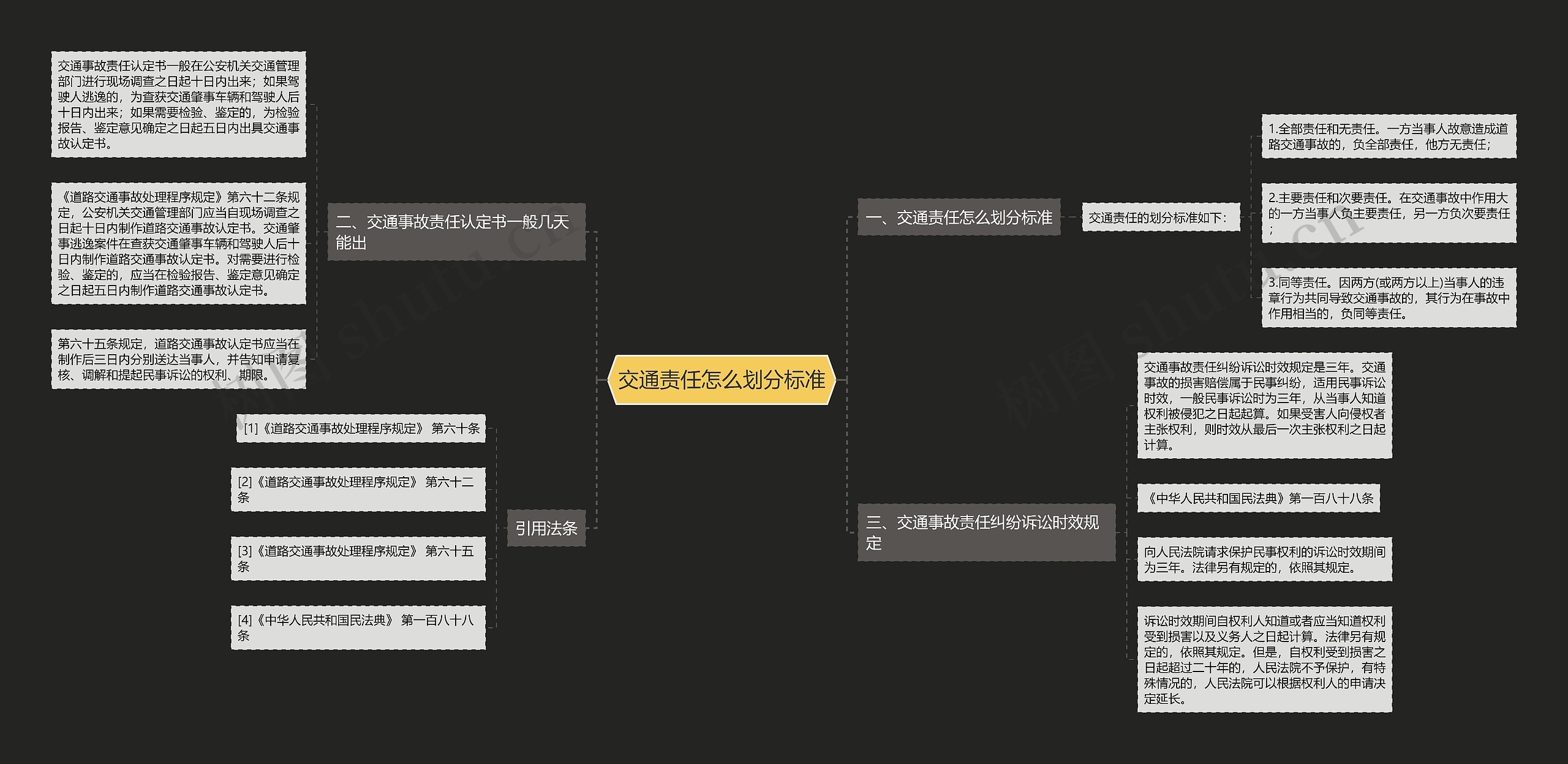 树图思维导图提供《交通责任怎么划分标准》在线思维导图免费制作,点击“编辑”按钮,可对《交通责任怎么划分标准》进行在线思维导图编辑,本思维导图属于思维导图模板主题,文件编号是:18614b644e2f7f168c7a9916444b6096
