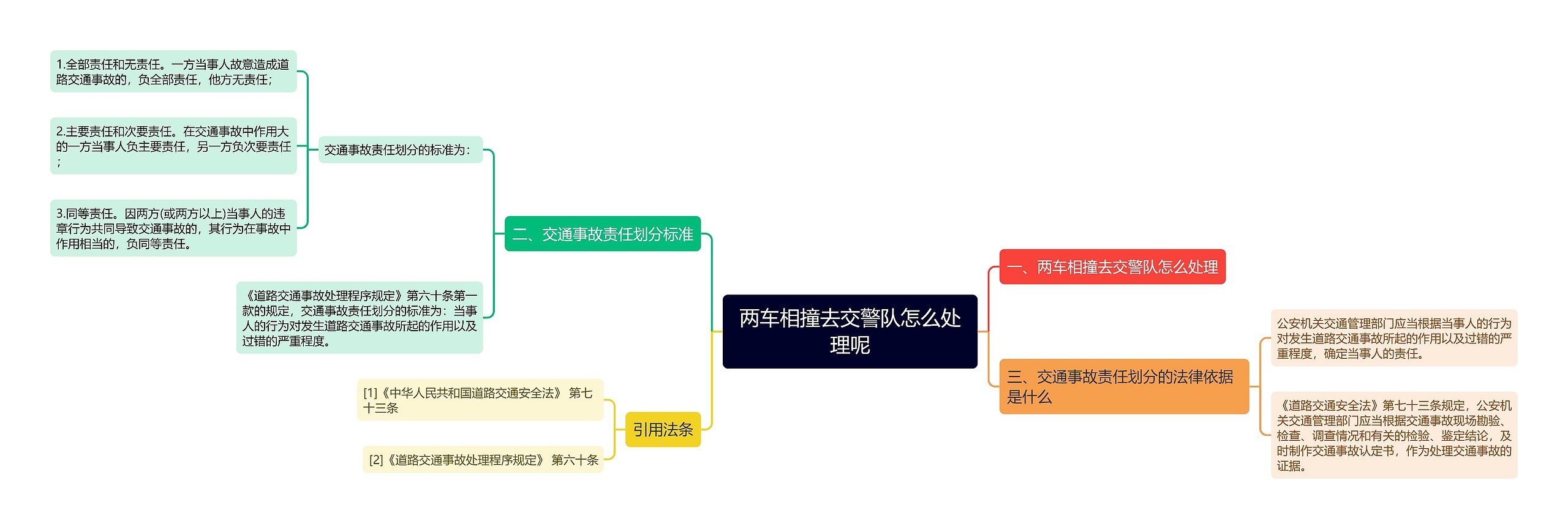 树图思维导图提供《两车相撞去交警队怎么处理呢》在线思维导图免费制作,点击“编辑”按钮,可对《两车相撞去交警队怎么处理呢》进行在线思维导图编辑,本思维导图属于思维导图模板主题,文件编号是:84e5d4850832216f27dda41dcb753ac3
