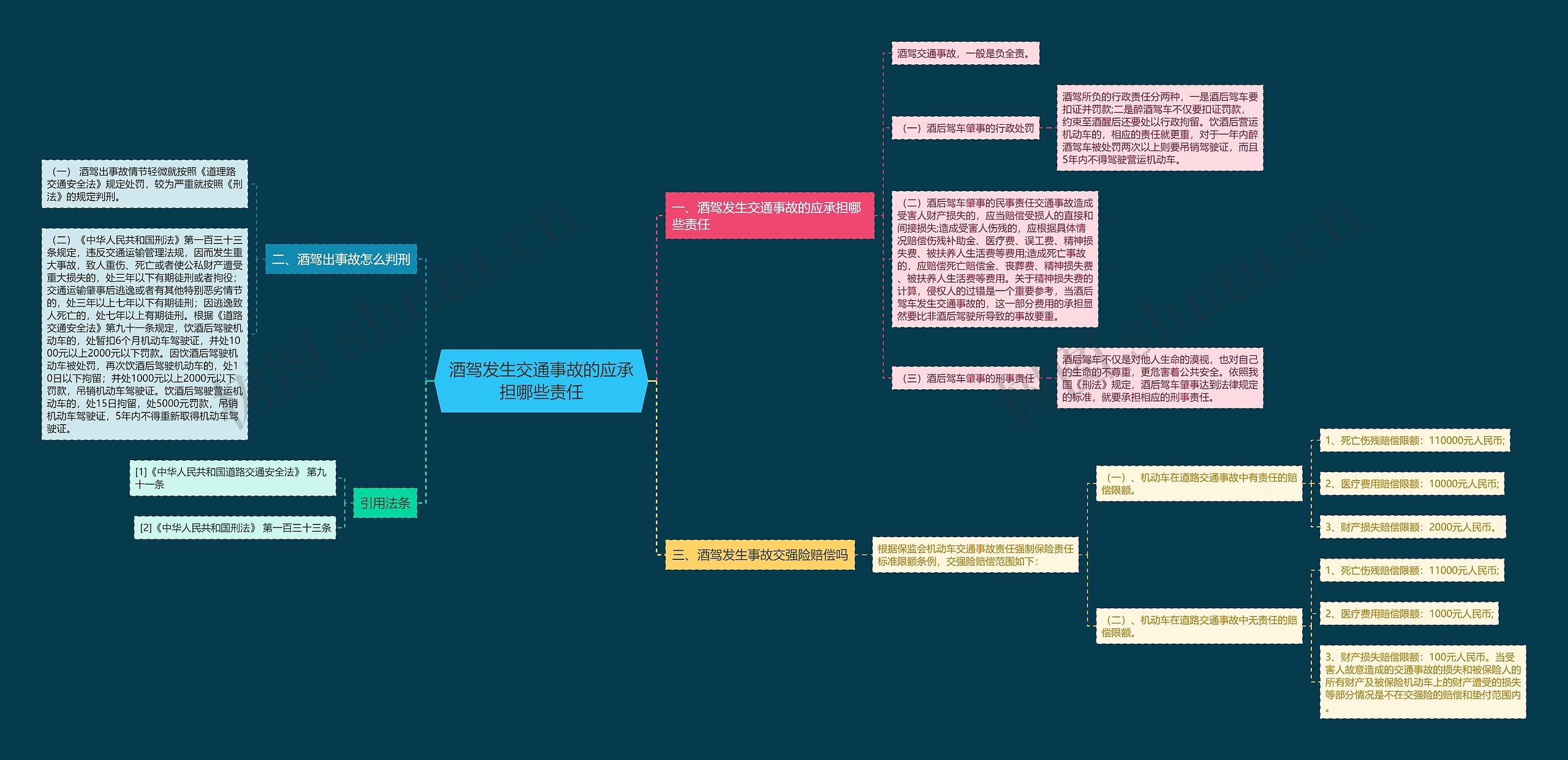 树图思维导图提供《酒驾发生交通事故的应承担哪些责任》在线思维导图免费制作,点击“编辑”按钮,可对《酒驾发生交通事故的应承担哪些责任》进行在线思维导图编辑,本思维导图属于思维导图模板主题,文件编号是:81a02711aec0c144b9451e5db841c548