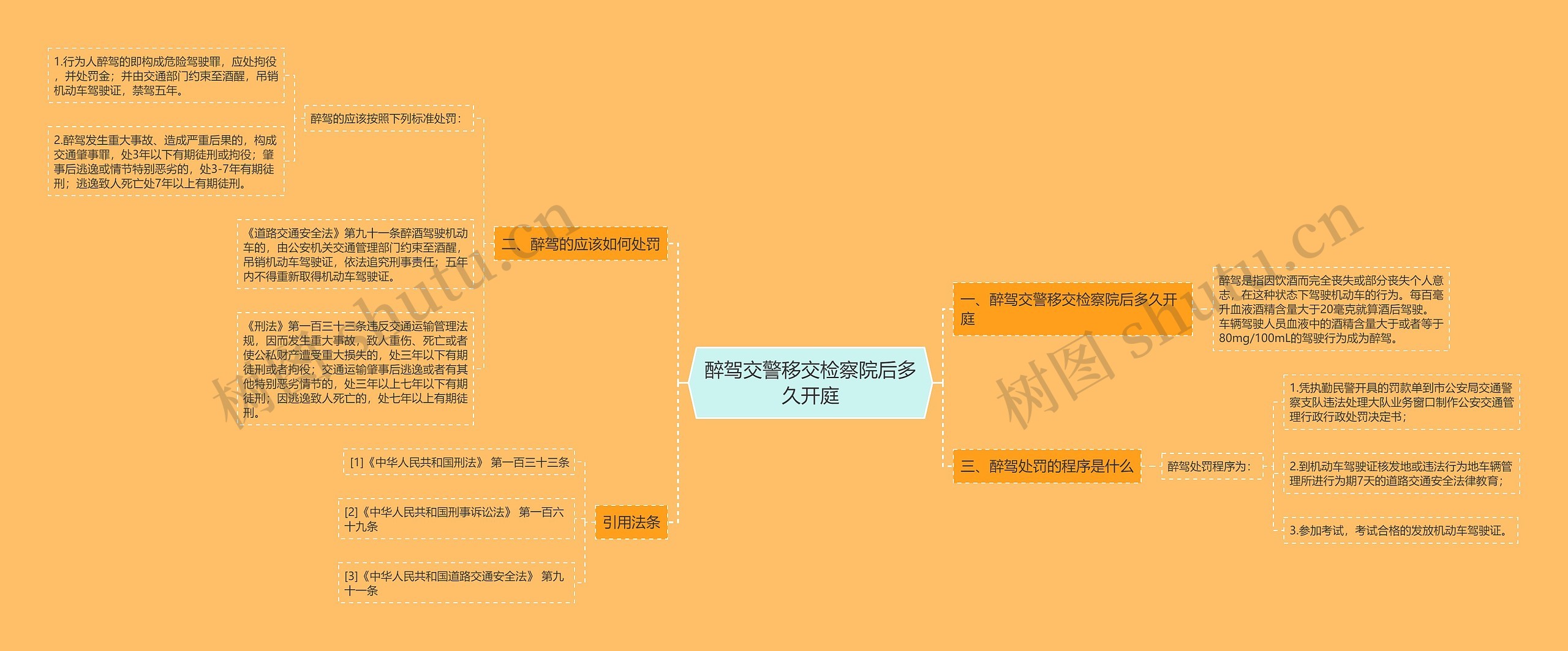 树图思维导图提供《醉驾交警移交检察院后多久开庭》在线思维导图免费制作,点击“编辑”按钮,可对《醉驾交警移交检察院后多久开庭》进行在线思维导图编辑,本思维导图属于思维导图模板主题,文件编号是:b4ac20f29cbbdf3e0ffdeaebd4b45f9c