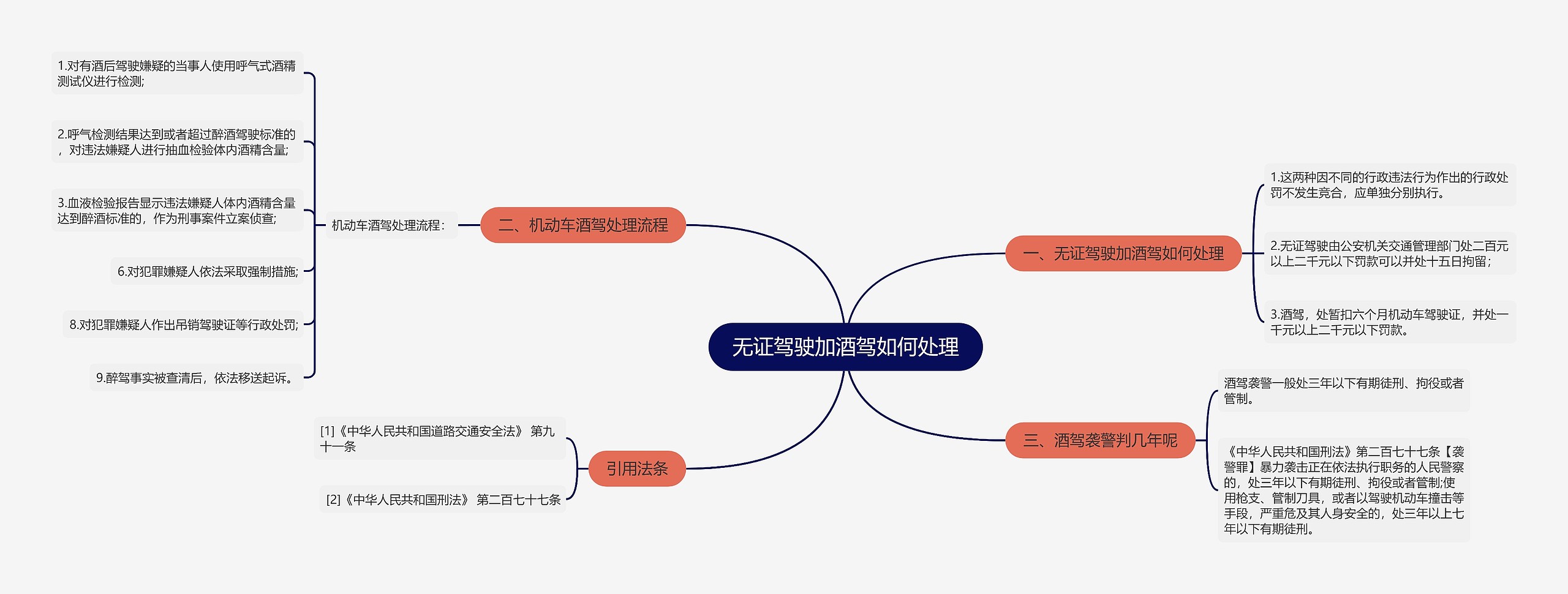 树图思维导图提供《无证驾驶加酒驾如何处理》在线思维导图免费制作,点击“编辑”按钮,可对《无证驾驶加酒驾如何处理》进行在线思维导图编辑,本思维导图属于思维导图模板主题,文件编号是:b6b67bc742a7c2324a96395a7c2e7cde
