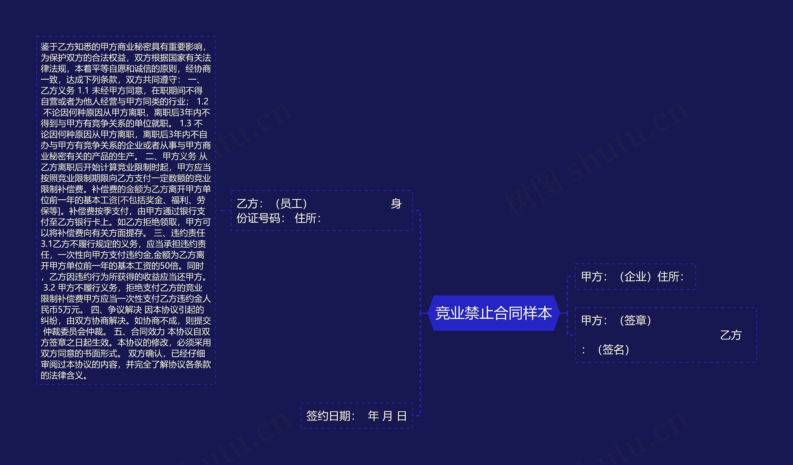 鉴于乙方知悉的甲方商业秘密具有重要影响,为保护双方的合法权益,双方根据国家有关法律法规,本着平等自愿和诚信的原则,经协商一致,达成下列条款,双方共同遵守: 一、乙方义务 1.1 未经甲方同意,在职期间不得自营或者为他人经营与甲方同类的行业; 1.2 不论因何种原因从甲方离职,离职后3年内不得到与甲方有竞争关系的单位就职。 1.3 不论因何种原因从甲方离职,离职后3年内不自办与甲方有竞争关系的企业或者从事与甲方商业秘密有关的产品的生产。 二、甲方义务 从乙方离职后开始计算竞业限制时起,甲方应当按照竞业限制期限向乙方支付一定数额的竞业限制补偿费。补偿费的金额为乙方离开甲方单位前一年的基本工资[不包括奖金、福利、劳保等]。补偿费按季支付,由甲方通过银行支付至乙方银行卡上。如乙方拒绝领取,甲方可以将补偿费向有关方面提存。 三、违约责任 3.1乙方不履行规定的义务,应当承担违约责任,一次性向甲方支付违约金,金额为乙方离开甲方单位前一年的基本工资的50倍。同时,乙方因违约行为所获得的收益应当还甲方。 3.2 甲方不履行义务,拒绝支付乙方的竞业限制补偿费甲方应当一次性支付乙方违约金人民币5万元。 四、争议解决 因本协议引起的纠纷,由双方协商解决。如协商不成,则提交 仲裁委员会仲裁。 五、合同效力 本协议自双方签章之日起生效。本协议的修改,必须采用双方同意的书面形式。 双方确认,已经仔细审阅过本协议的内容,并完全了解协议各条款的法律含义。