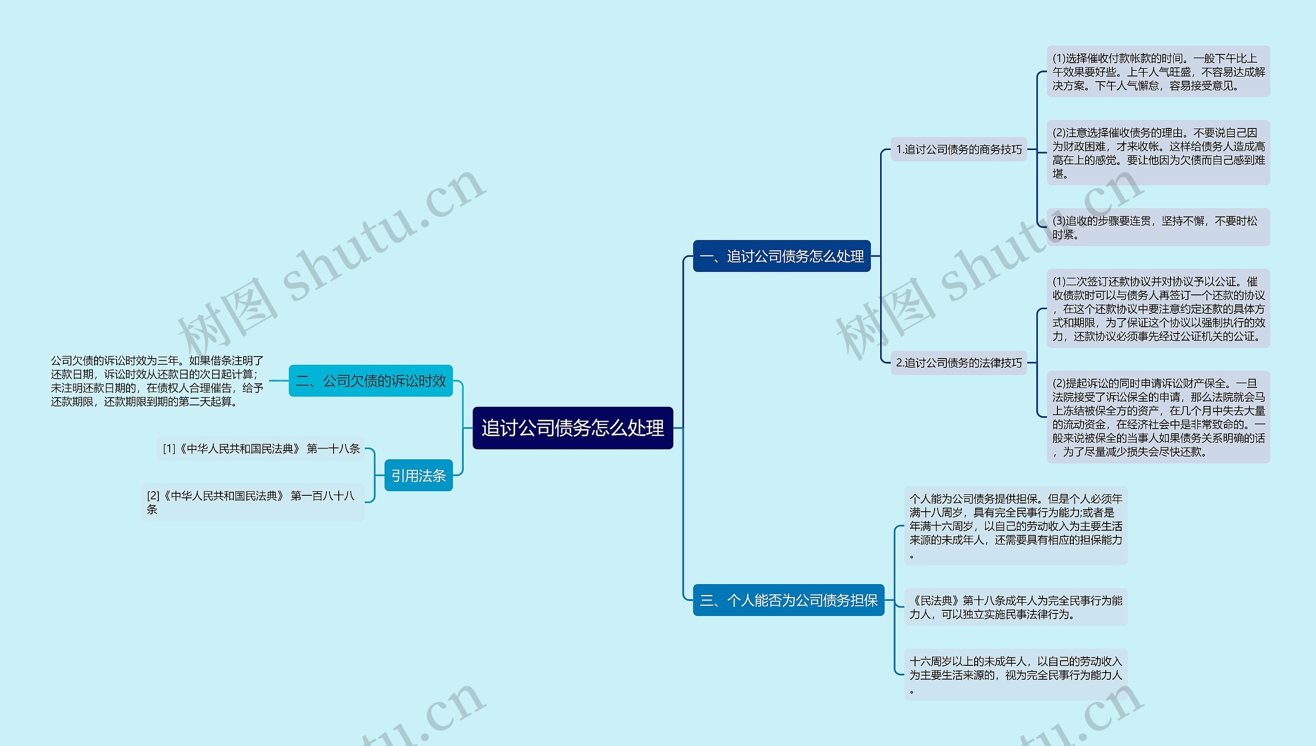 树图思维导图提供《追讨公司债务怎么处理》在线思维导图免费制作,点击“编辑”按钮,可对《追讨公司债务怎么处理》进行在线思维导图编辑,本思维导图属于思维导图模板主题,文件编号是:42e57c481e3b08aeabe3488b1f088a8b