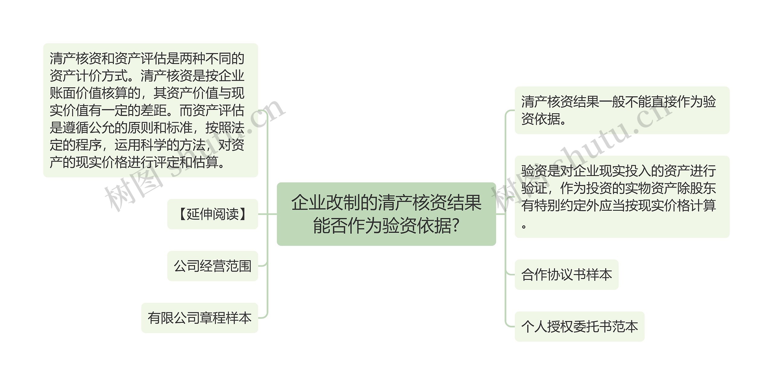树图思维导图提供《企业改制的清产核资结果能否作为验资依据?》在线思维导图免费制作,点击“编辑”按钮,可对《企业改制的清产核资结果能否作为验资依据?》进行在线思维导图编辑,本思维导图属于思维导图模板主题,文件编号是:2f11e9e3f8ed21bc6f1c934c66fcfb44