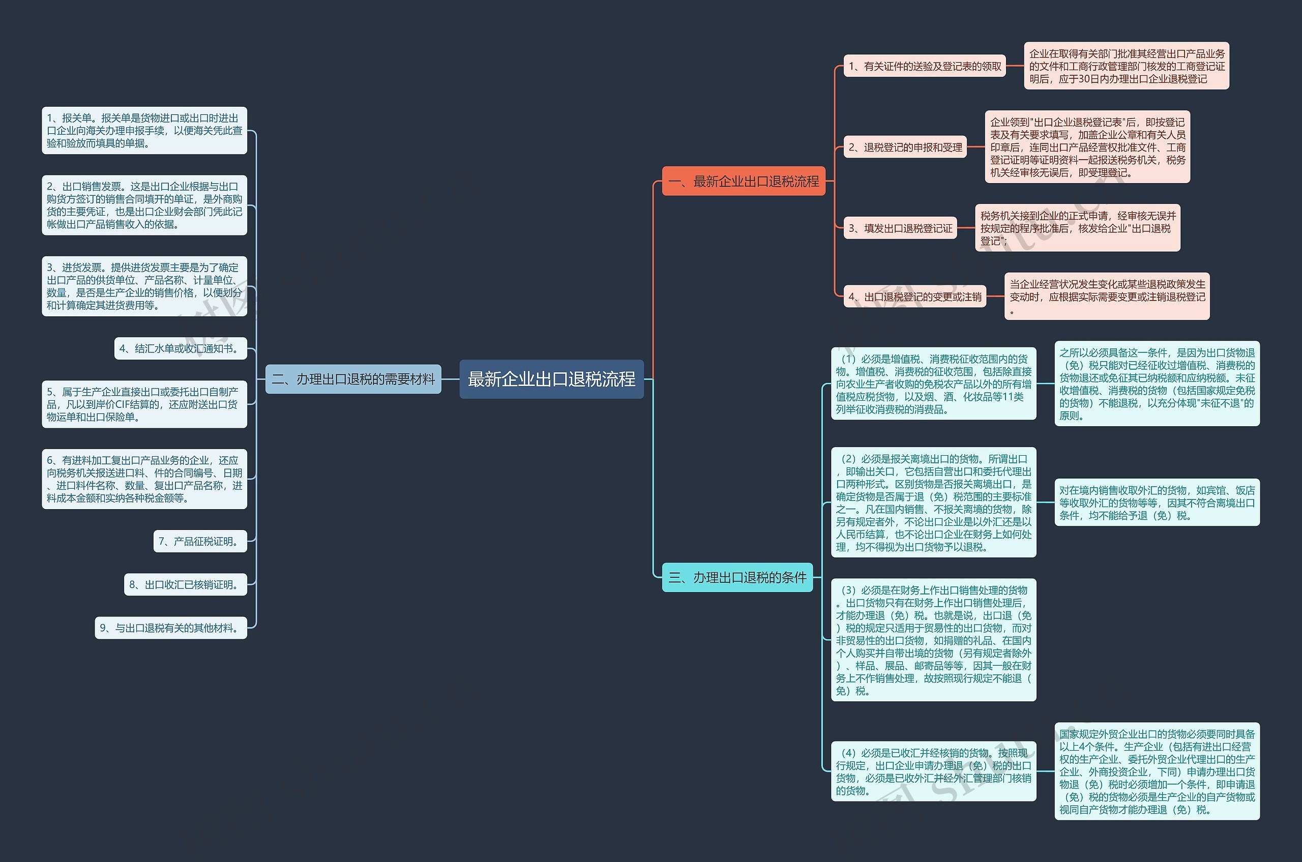 树图思维导图提供《最新企业出口退税流程》在线思维导图免费制作,点击“编辑”按钮,可对《最新企业出口退税流程》进行在线思维导图编辑,本思维导图属于思维导图模板主题,文件编号是:dfc787e191a34e688fadd4d0840bd34a